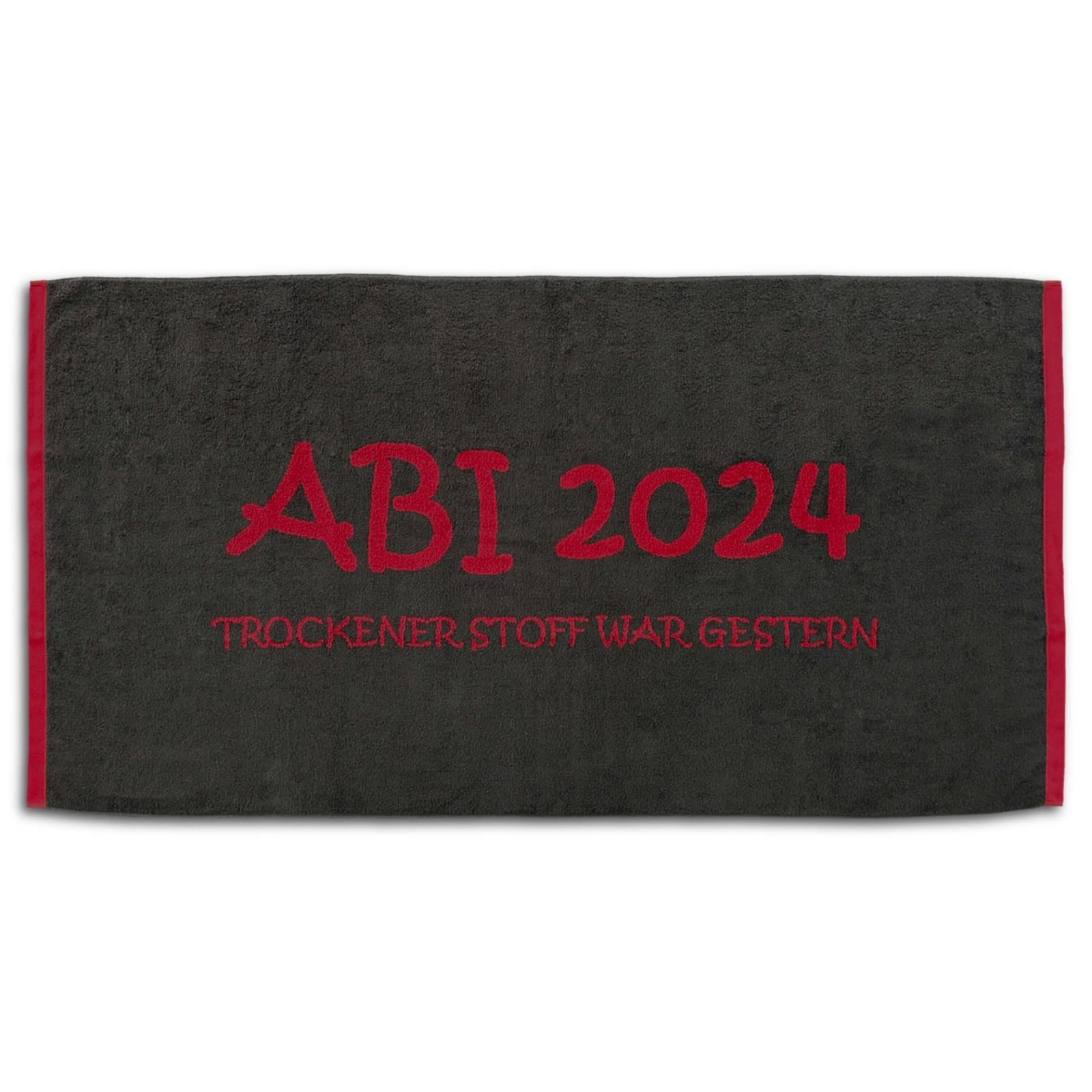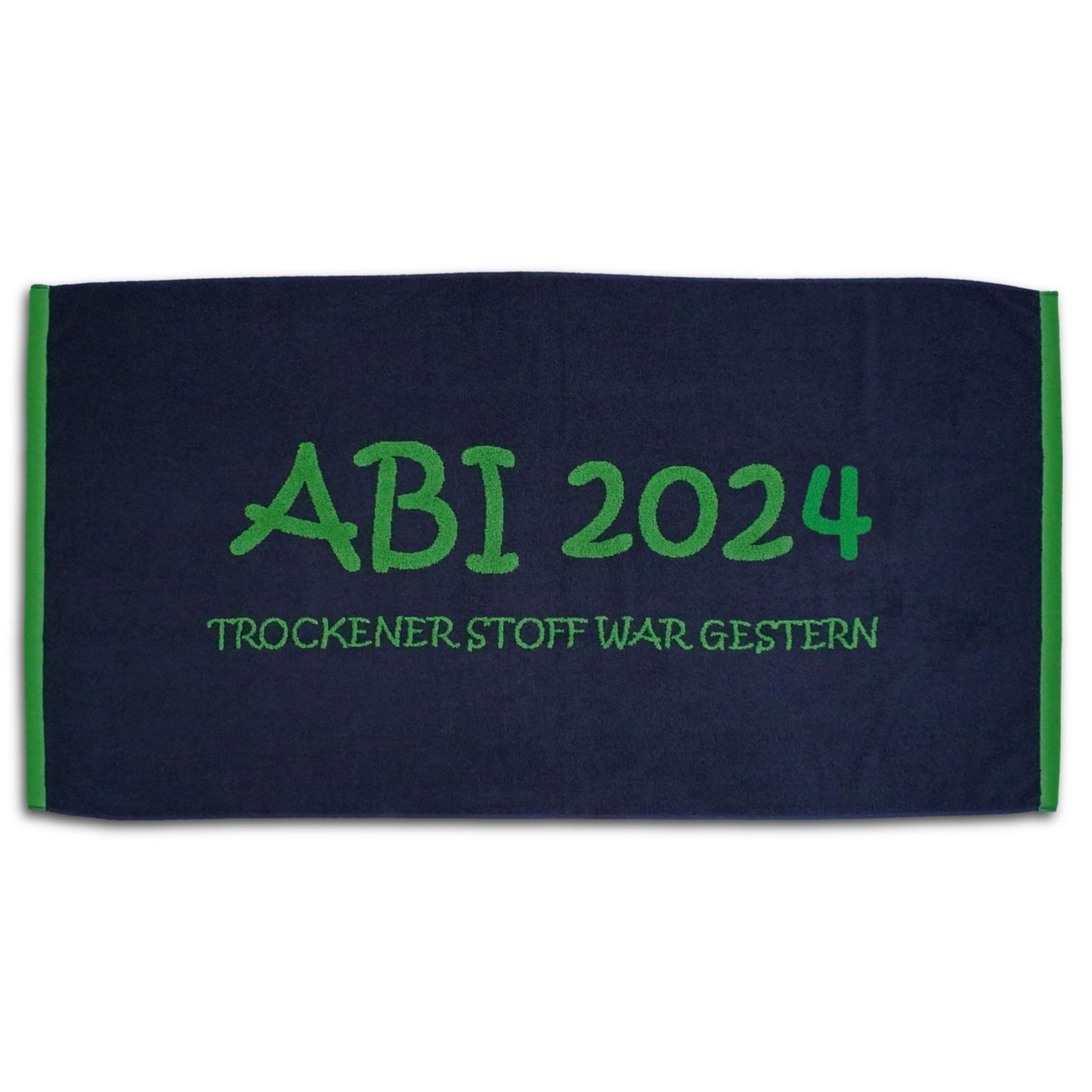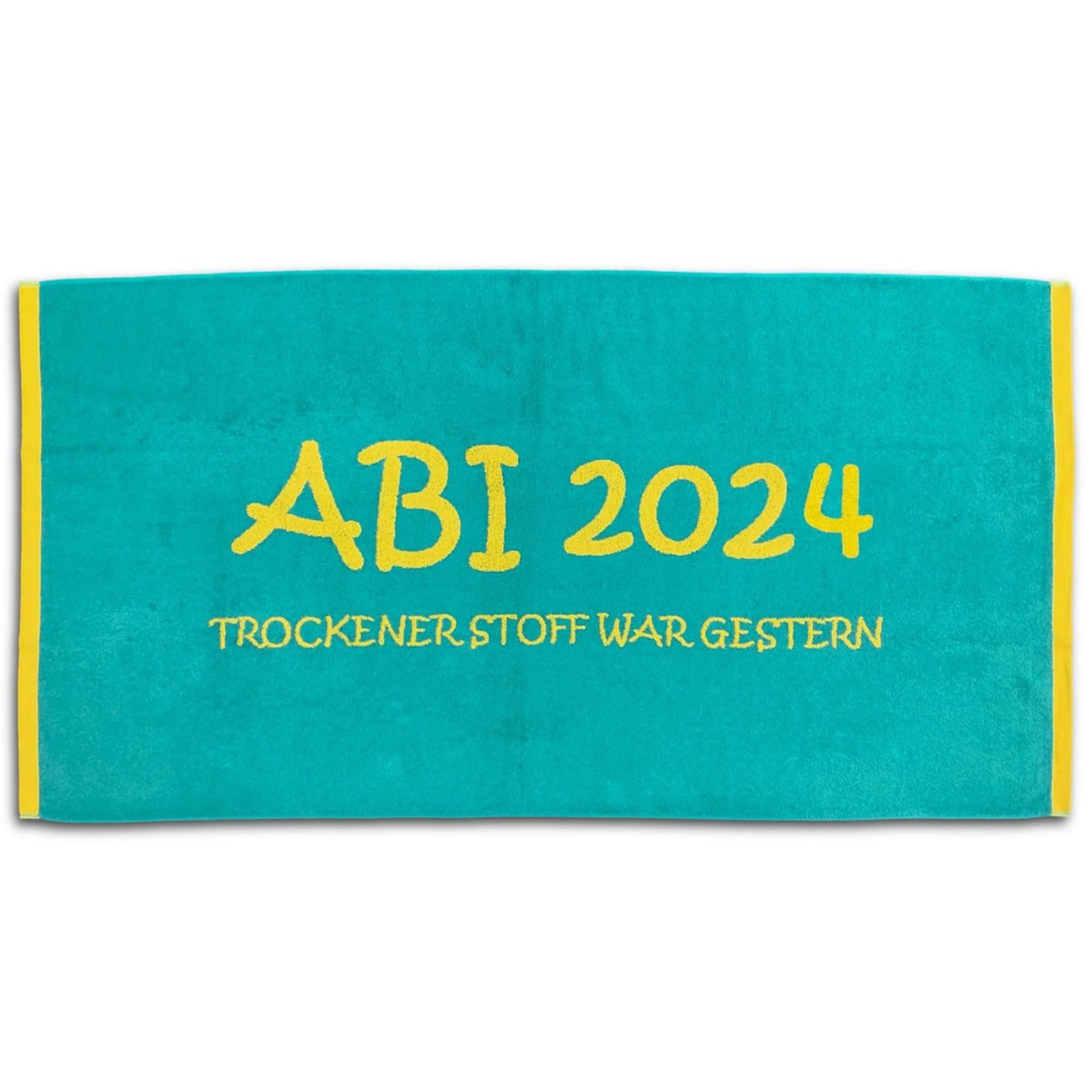Das Abitur ist bestanden, Zeit für eine entspannte Auszeit. Dieses Strandlaken ist der ideale Begleiter für alle, die ihr bestandenes Abitur 2024 stilvoll feiern möchten. Ob am Strand, im Freibad oder beim Chillen im Garten – das Badetuch aus reiner Baumwolle überzeugt durch angenehme Haptik und gute Saugfähigkeit. Das Webmuster mit dem Spruch "ABI 2024 - trockener Stoff war gestern" macht es zu einem passenden Begleiter für Abschlussfeiern und gemeinsame Aktivitäten mit Freunden. In zweifarbigem Design gestaltet, ist das Handtuch ein praktisches und zugleich persönliches Accessoire.