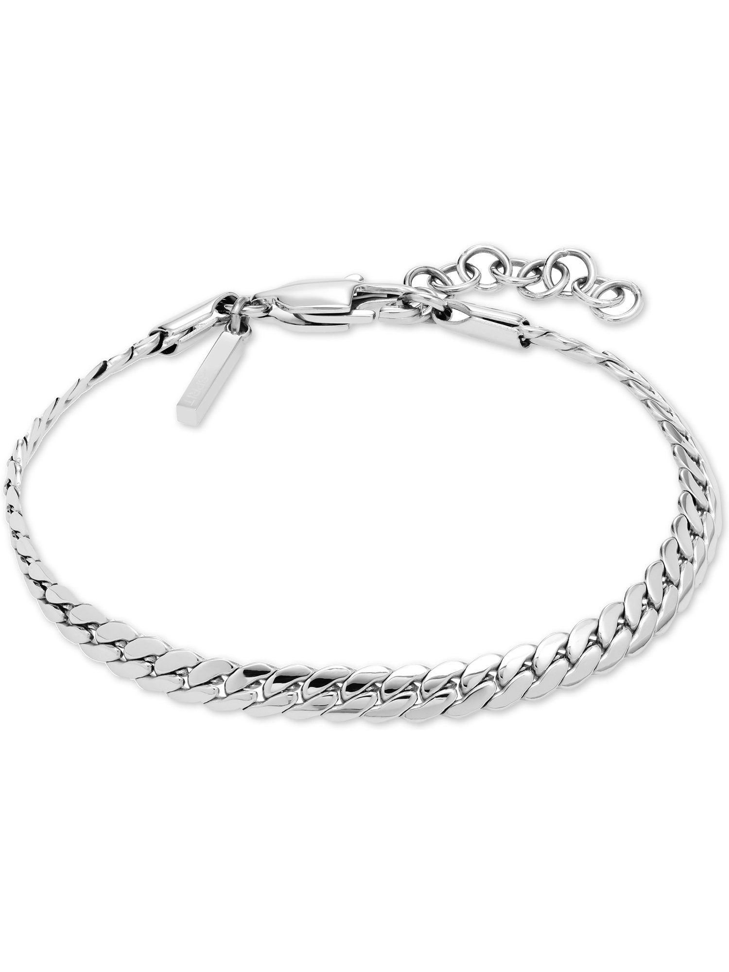 Sportlich, edel, trendig oder verspielt: Dieses hochwertig verarbeitete ESPRIT Armband passt sich allen Looks optimal an. Es ist aus vergoldetem Edelstahl gefertigt und läuft an einem verlängerbaren Karabinerverschluss zusammen. Durch die abgeflachten Glieder schmiegt sich der massiv gestaltete Armschmuck sanft an dein Handgelenk. Ein schönes Detail ist der Anhänger mit Logoprägung am Verschluss. Wir finden, dieses wortwörtlich glänzende Essential gehört in jede Schmuckbox!