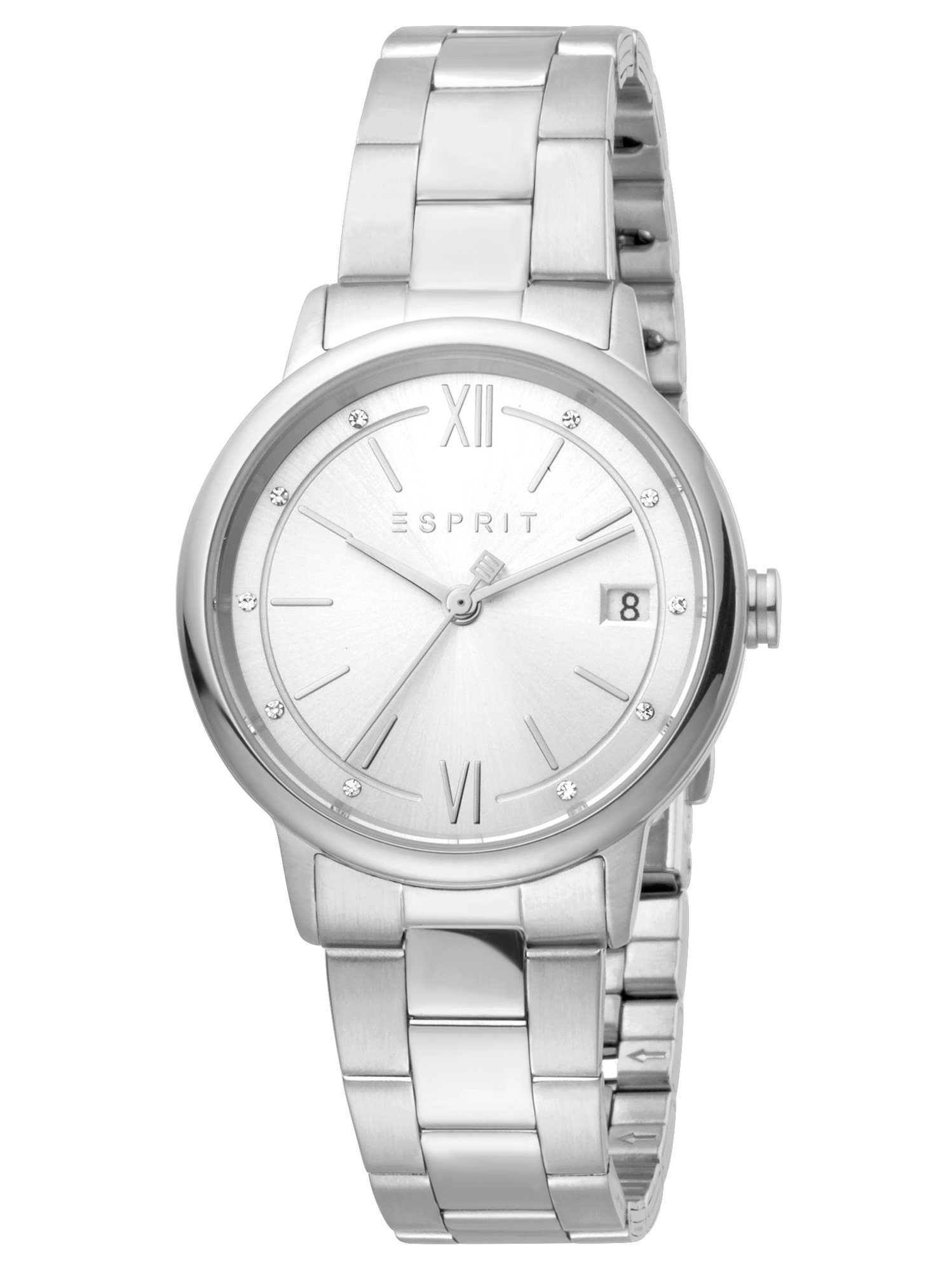 Zifferblatt mit weißen Zirkonia Steinchen besetzt.