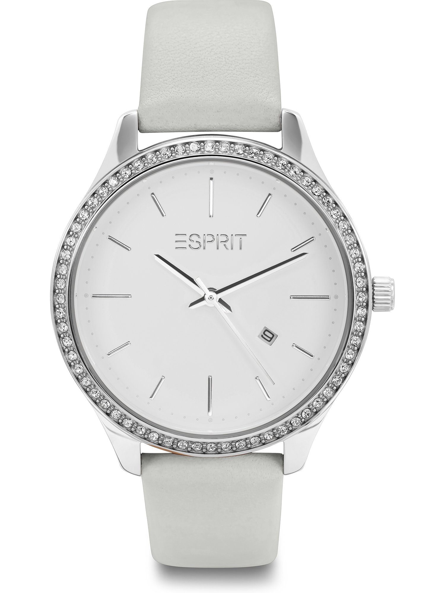 Schmuckvoll und in klarer Form, edel und feminin: Die Uhr mit dem schlichten, grauen Lederband strahlt eine gewisse Gelassenheit aus. Besonders stylish wirken die Zirkonia-Steine, die der Lünette ein hübsches Funkeln verleihen. Bei dem weißen Ziffernblatt steht das puristische Design im Vordergrund, das ESPRIT mit seinem Namen kennzeichnet. Glänzender, silberner Edelstahl, stabiles Mineralglas und ein funktionales Quarzwerk – mit dieser Ausstattung ist die Armbanduhr ein verlässlicher Begleiter im Daily Lifestyle.