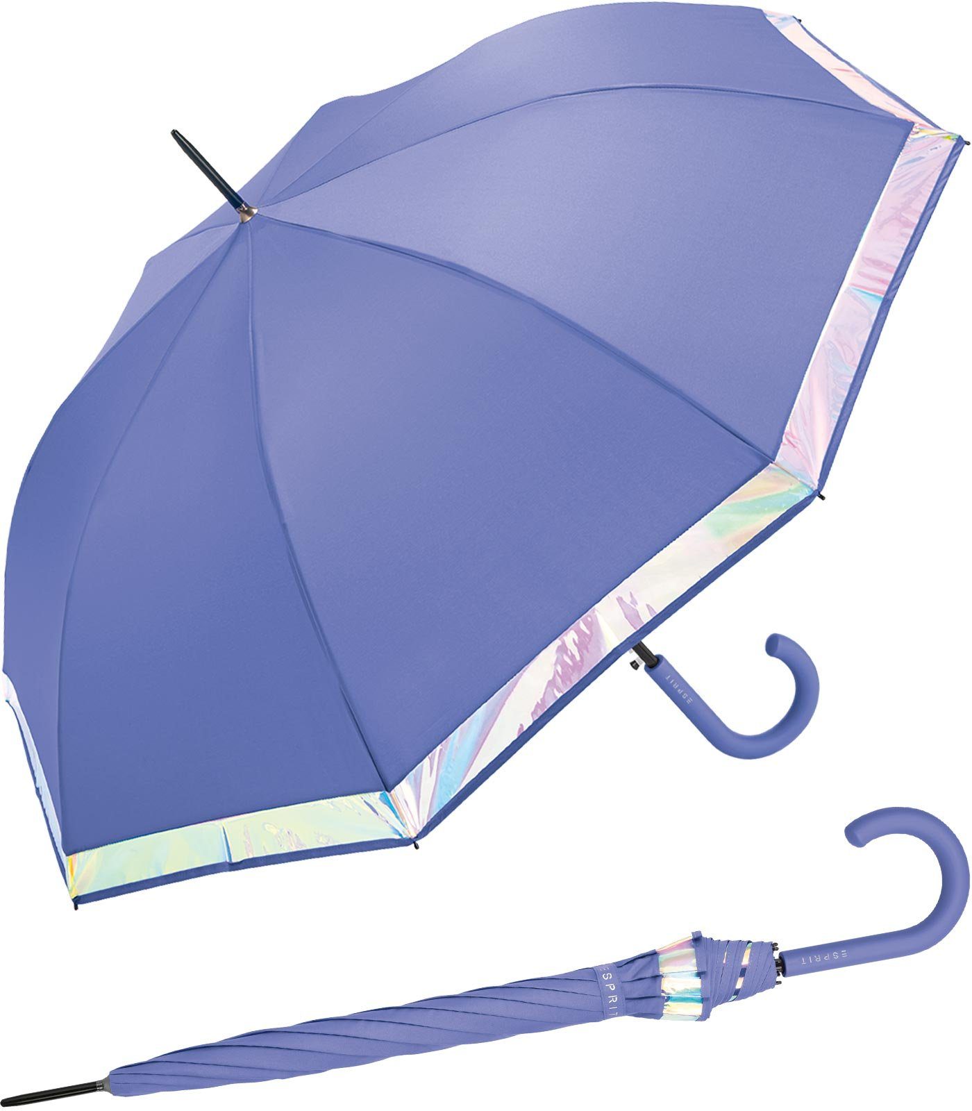 Esprit Stockregenschirm Damen Regenschirm mit Automatik Shiny Border, groß und stabil, mit schimmernder Borte