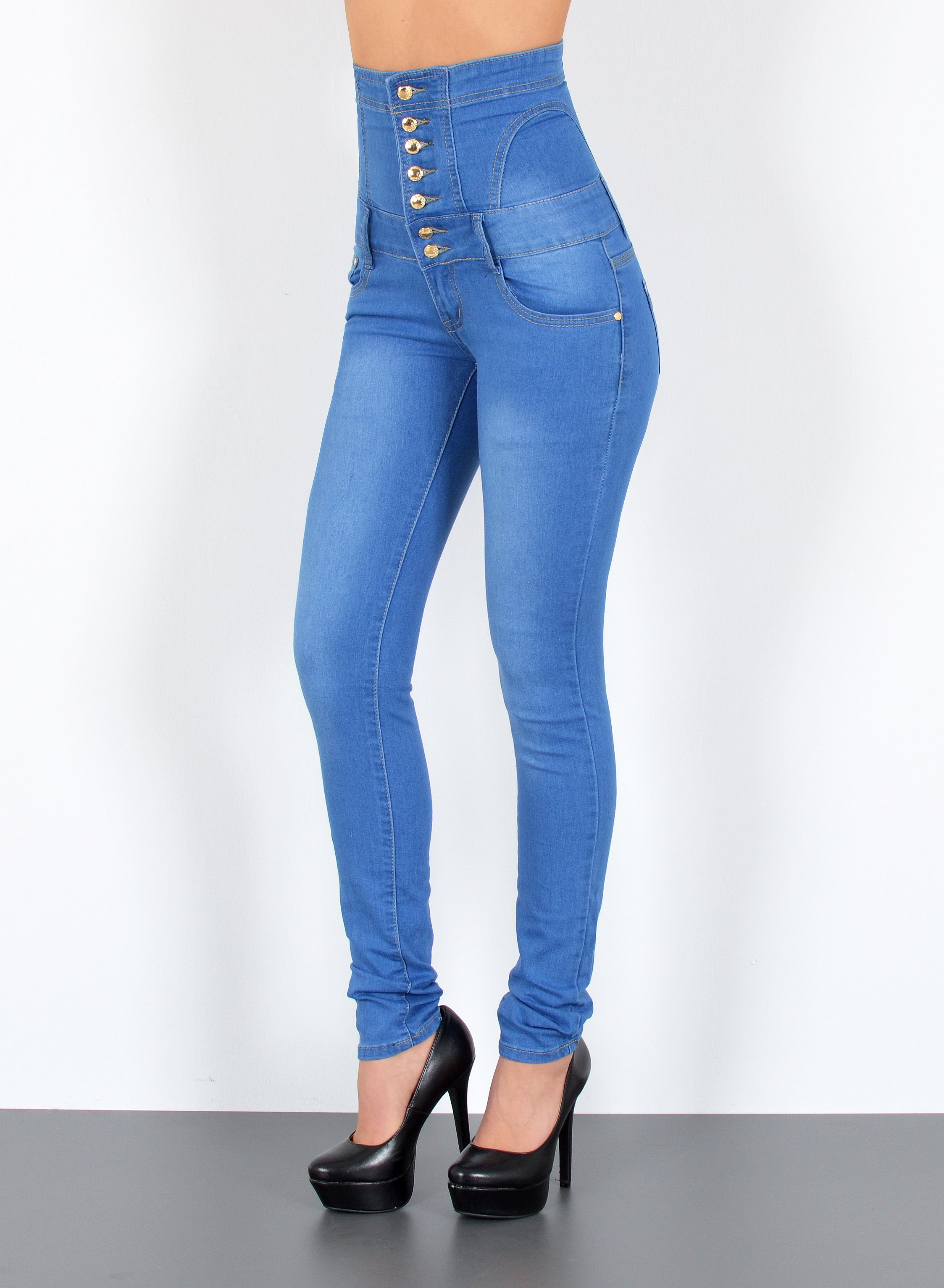 Damen High Waist Jeans Skinny Hose mit 7-Knopf Verschluss und Push Up Look; perfekte Skinny Jeans für den Alltag; Die Damen Stretchjeans sitzt Dank des Elasthan-Anteils perfekt