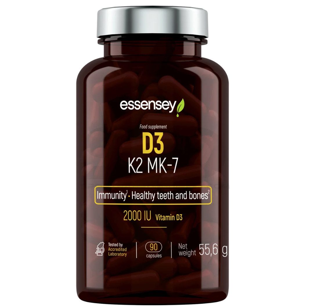 Nahrungsergänzungsmittel. Produkt in Kapseln mit 2000 IE Vitamin D3 und Vitamin K2 MK-7. *Vitamin D trägt zu einer normalen Funktion des Immunsystems bei.