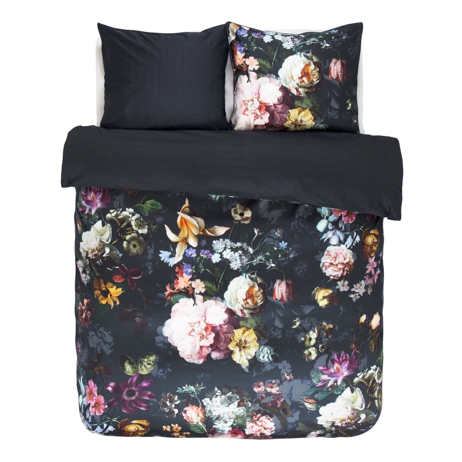 Inspiriert von altholländischen Malereien, verzaubert die aus 100 Prozent Baumwolle gefertigte Wendebettwäsche Fleur von Essenza auch Ihr Schlafzimmer. Verschiedene Blumenarten in prachtvollen Farben zieren die Vorderseite der Garnitur und schaffen ein elegantes Design. Der tiefe nachtblaue Hintergrund bringt das Muster besonders gut zur Geltung. Die einfarbige Abseite ist ebenfalls in Dunkelblau gehalten. Kuscheln Sie sich in die geschmeidige und anschmiegsame Satin Oberfläche und genießen Sie erholsame Nächte.