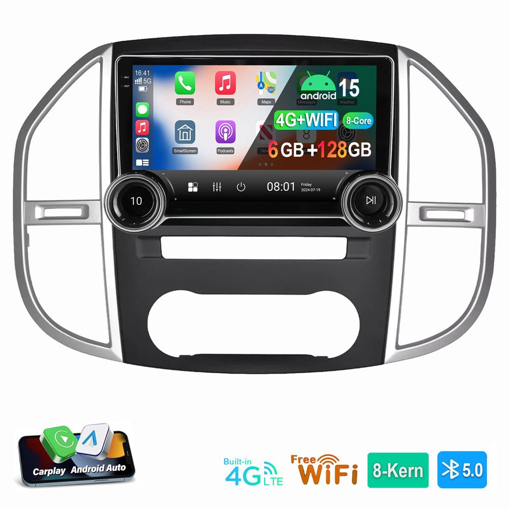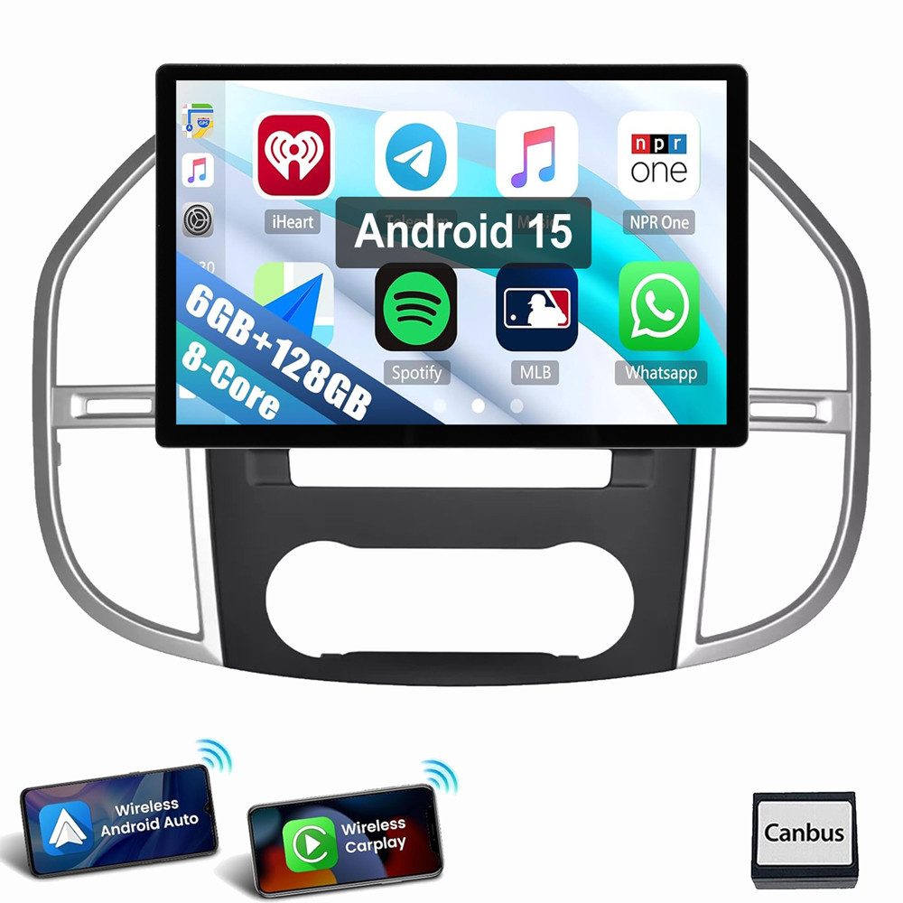 13.3 Zoll Android 15 Autoradio für Mercedes Benz Vito 3 W447 2014-2020 : Das Android Autoradio mit 13.3" 1920* 1200 QLED kapazitivem Touchscreen, 6GB RAM und 128GB ROM ermöglicht das Herunterladen Ihrer Lieblings-Apps und -Videos, damit das Autofahren nicht mehr langweilig wird. Kein zusätzlicher Rahmen, kein Kabelwechsel, Plug and Play.