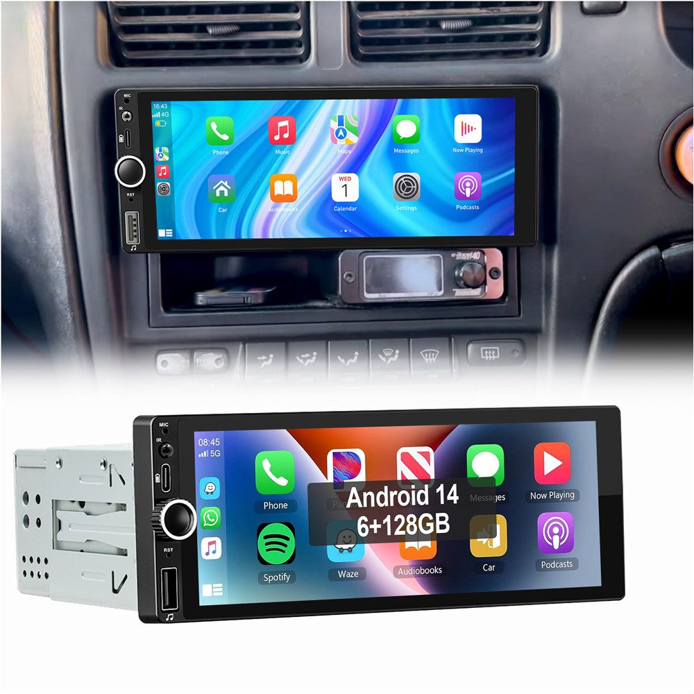 6.86 Zoll 1 DIN Android Autoradio – Einbaumaß: 174*171*50 mm/6.85*6.73*2.0 in. Der 6.86-Zoll-HD-Handausziehbildschirm bietet Ihnen ein besseres visuelles Erlebnis und bringt ein besseres Technikgefühl in Ihr Auto! Ausgestattet mit einem hochauflösenden kapazitiven Touchscreen und leicht erreichbaren physischen Tasten, USB- and TF, um mehrere Optionen für Musik- und Filmgenuss im Fahrzeug zu bieten. Mit dem leistungsstarken Android 14-System können Sie das reibungslose und reaktionsschnelle Autoradio genießen.