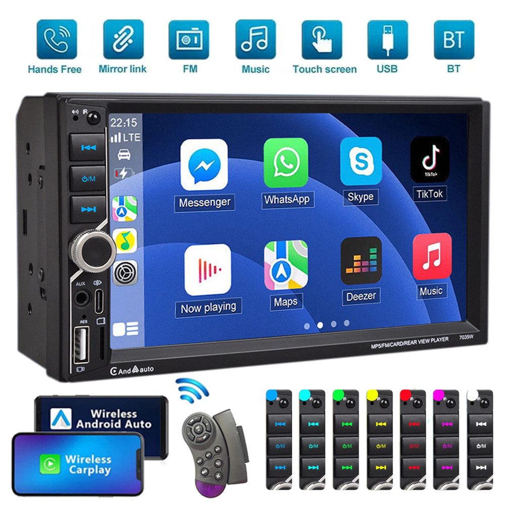 7-Zoll-Doppel-Din-Touchscreen-Autoradio Kapazitiver 7-Zoll-1024x600-HD-Bildschirm. Universelle Doppel-DIN-Standardgröße 7 Zoll × 4 Zoll × 2,4 Zoll, passend für die meisten Fahrzeuge. Unsere Doppel-Din-Stereoanlage ist mit einem kapazitiven 7-Zoll-HD-Touchscreen ausgestattet und macht sie empfindlicher und genauer.