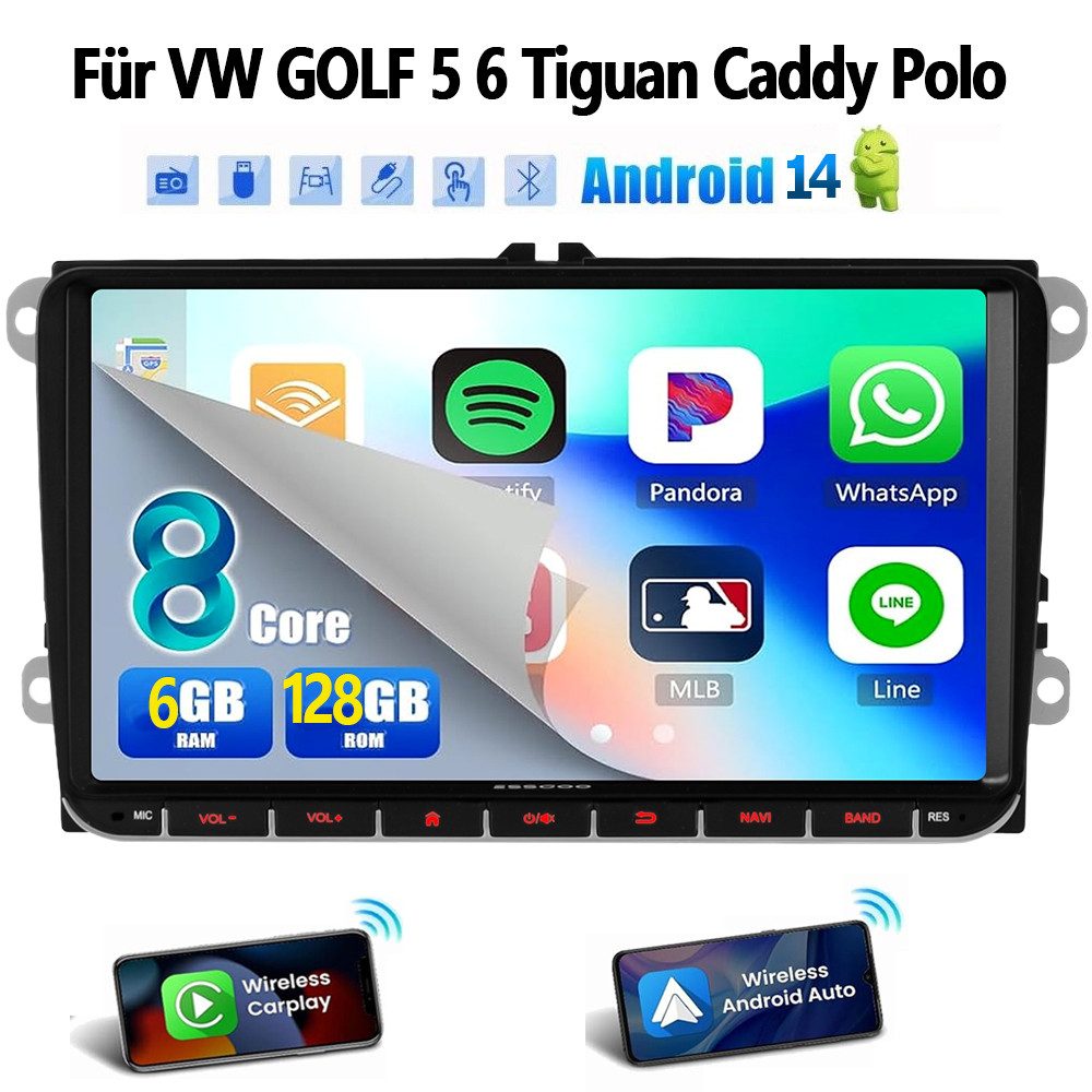 9 Zoll Android 14 Autoradio für VW/TIGUAN/GOLF/POLO/TOURAN/CADDY: Das Android Autoradio mit 9" 1024* 600 HD kapazitivem Touchscreen, 6GB RAM und 128GB ROM ermöglicht das Herunterladen Ihrer Lieblings-Apps und -Videos, damit das Autofahren nicht mehr langweilig wird. Kein zusätzlicher Rahmen, kein Kabelwechsel, Plug and Play. Es wird mit Canbus geliefert und unterstützt die meisten Originalfunktionen: Lenkradsteuerung, Rückwärtssignale und Lesen von Original-Computerdaten usw.