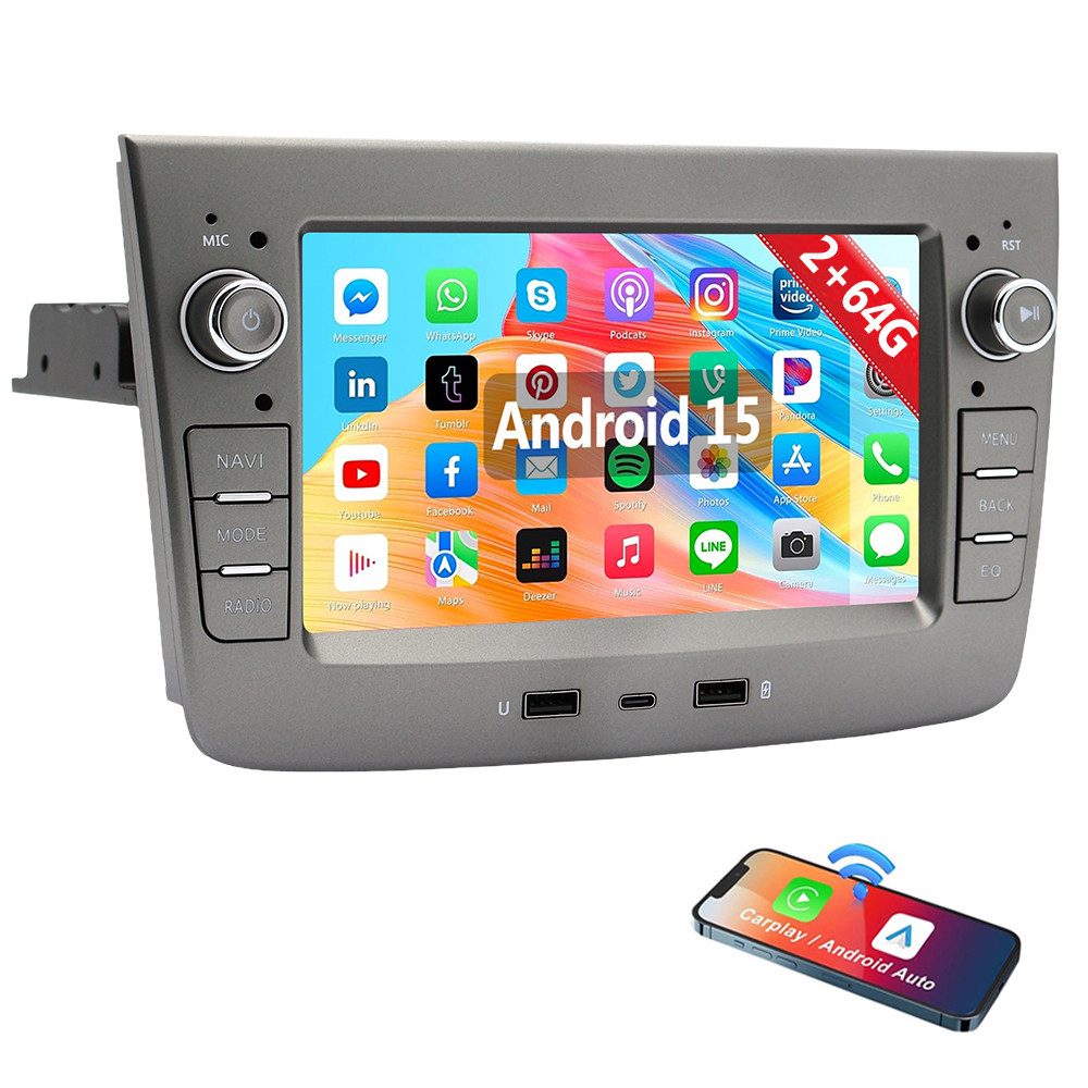 7'' Radio für Alfa Romeo Mito Android 15 Auto GPS Navi Carplay : Das Android Autoradio mit 7" 1024* 600 HD kapazitivem Touchscreen, 2GB RAM und 64GB ROM /4GB RAM und 64GB ROM ermöglicht das Herunterladen Ihrer Lieblings-Apps und -Videos, damit das Autofahren nicht mehr langweilig wird. Kein zusätzlicher Rahmen, kein Kabelwechsel, Plug and Play. Es wird mit Canbus geliefert und unterstützt die meisten Originalfunktionen: Lenkradsteuerung, Rückwärtssignale und Lesen von Original-Computerdaten usw.
