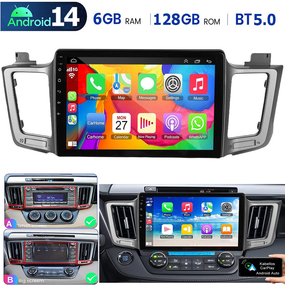 10 Zoll Android 14 Autoradio Für Toyota RAV4 2013-2018: Das Android Autoradio mit 10" 1280* 720 QLED kapazitivem Touchscreen, 6GB RAM und 128GB ROM ermöglicht das Herunterladen Ihrer Lieblings-Apps und -Videos, damit das Autofahren nicht mehr langweilig wird. Kein zusätzlicher Rahmen, kein Kabelwechsel, Plug and Play. Es wird mit Canbus geliefert und unterstützt die meisten Originalfunktionen: Lenkradsteuerung, Rückwärtssignale und Lesen von Original-Computerdaten usw.