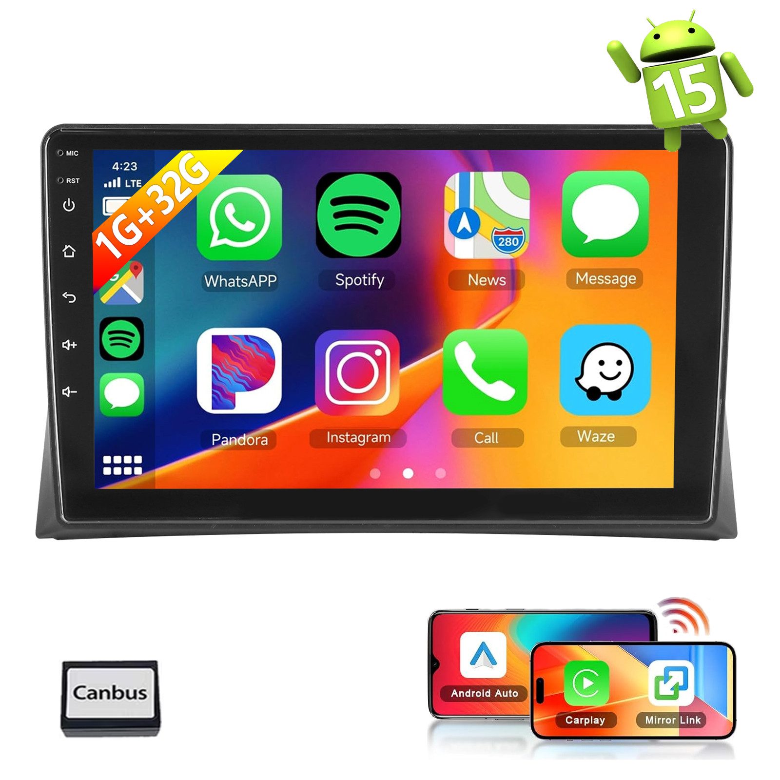Bildschirm Spiegelfür iOS/Android: Das Autoradio unterstützt Mirror Link für iOS/Android-Telefone. Nachdem Sie das Radio angeschlossen haben, können Sie die Telefonseite mit dem 9-Zoll-Touchscreen des Radios synchronisieren. Das iPhone stellt eine Verbindung über WLAN her, und das Android-Telefon stellt eine Verbindung über WLAN oder das Original-USB-Kabel her (gilt nicht für Samsung- und Huawei-Telefone).