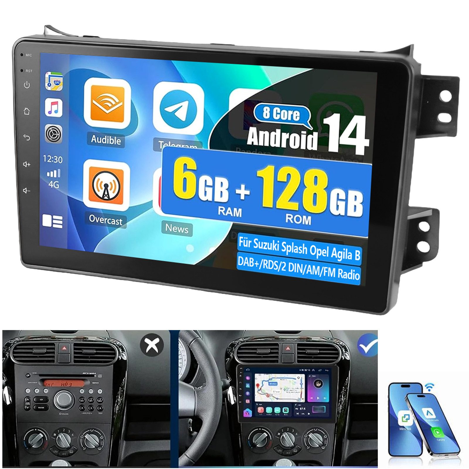 9 Zoll Android 14 Autoradio Für Opel Agila B 2004-2014 Suzuki Splash: Das Android Autoradio mit 9" 1280* 720 QLED kapazitivem Touchscreen, 6GB RAM und 128GB ROM ermöglicht das Herunterladen Ihrer Lieblings-Apps und -Videos, damit das Autofahren nicht mehr langweilig wird. Kein zusätzlicher Rahmen, kein Kabelwechsel, Plug and Play.