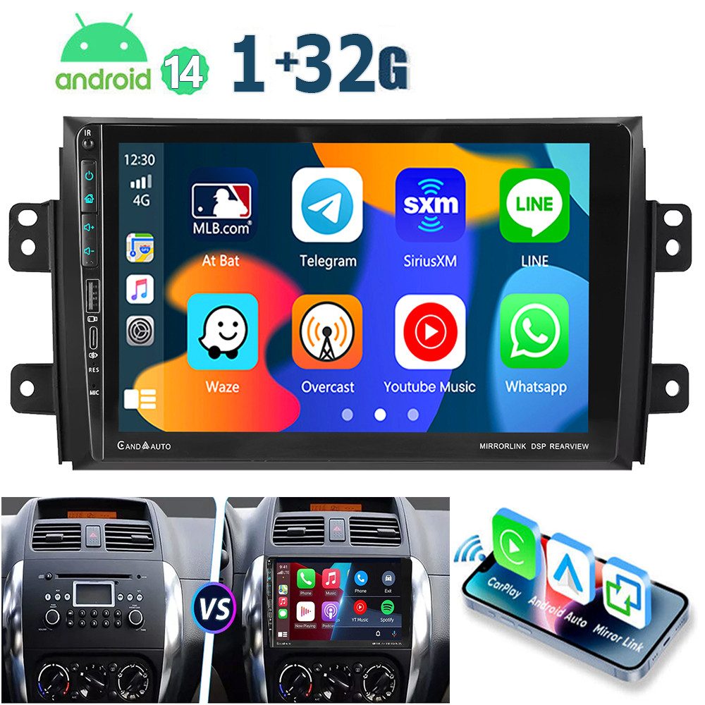 9 Zoll Android 14 Autoradio Für SUZUKI SX4 2006-2013: Das Android Autoradio mit 9" 1280* 720 HD IPS kapazitivem Touchscreen, 1 GB (RAM) +32 GB (ROM)/2 GB (RAM) +64 GB (ROM)/4 GB (RAM) +64 GB (ROM)