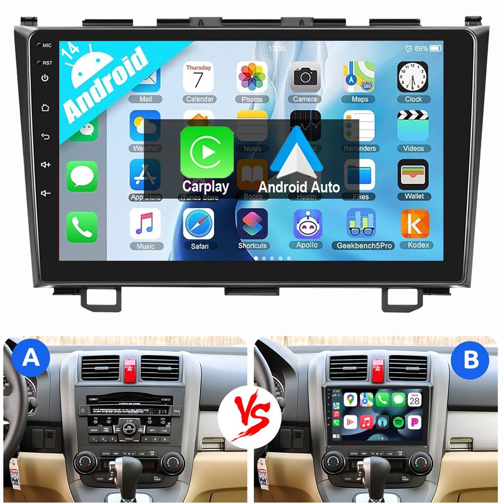 9 Zoll Android 14 Autoradio Für Honda CR-V: Das Android Autoradio mit 9" 1280* 720 HD kapazitivem Touchscreen, 1/2/4GB RAM und 32/64GB ROM ermöglicht das Herunterladen Ihrer Lieblings-Apps und -Videos, damit das Autofahren nicht mehr langweilig wird. Kein zusätzlicher Rahmen, kein Kabelwechsel, Plug and Play.