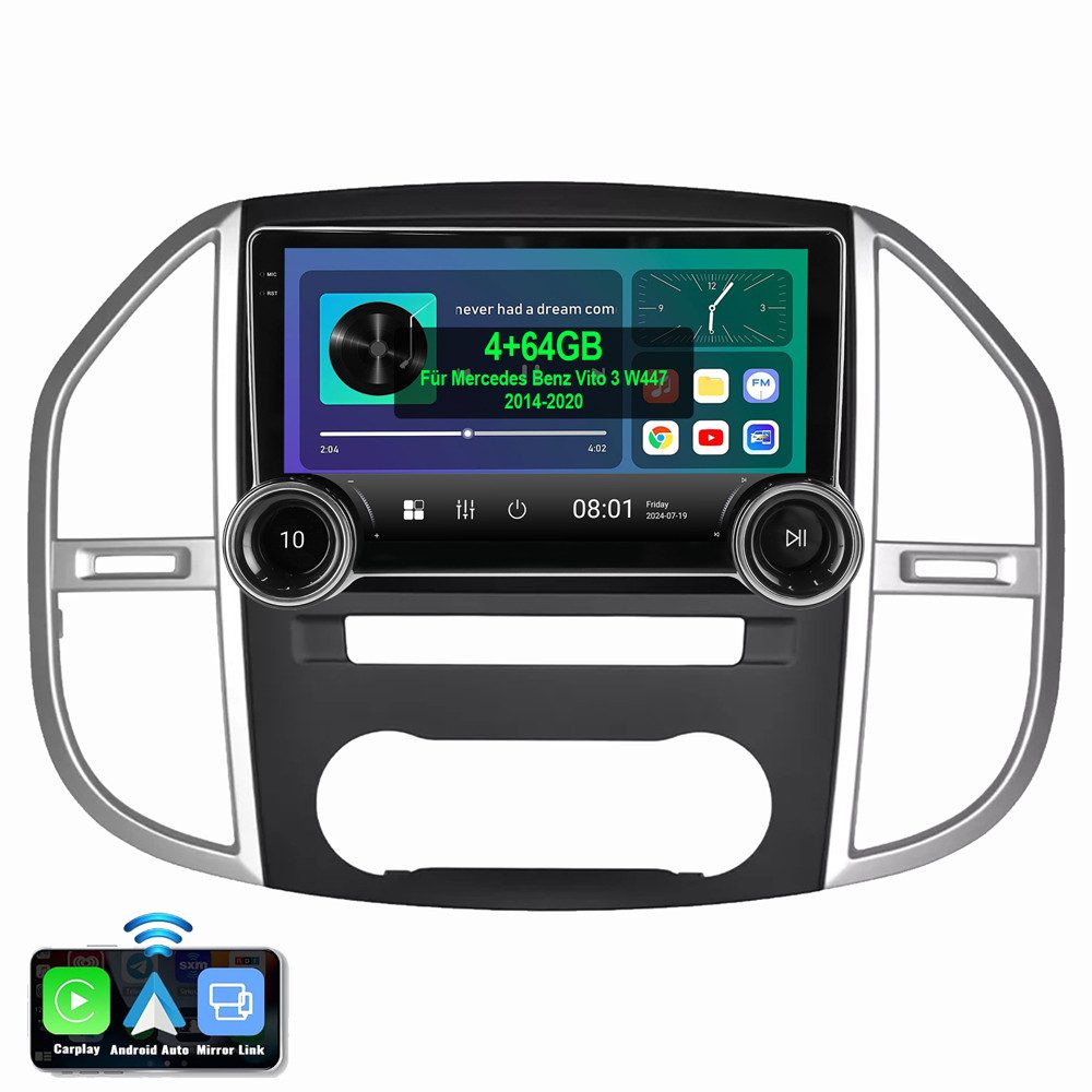 10 Zoll Android 14 Autoradio Für Mercedes Benz Vito 3 W447 2014-2020:Das Android Autoradio mit 10" 1280* 720 IPS kapazitivem Touchscreen, 4/2GB RAM und 64/32GB ROM ermöglicht das Herunterladen Ihrer Lieblings-Apps und -Videos, damit das Autofahren nicht mehr langweilig wird. Kein zusätzlicher Rahmen, kein Kabelwechsel, Plug and Play. Es wird mit Canbus geliefert und unterstützt die meisten Originalfunktionen: Lenkradsteuerung, Rückwärtssignale und Lesen von Original-Computerdaten usw.