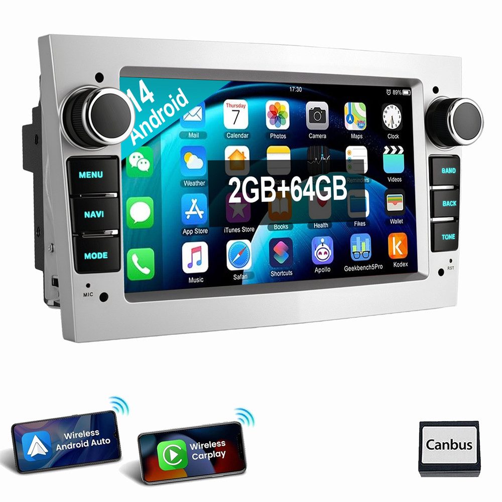 7 Zoll Android 14 Autoradio Für OPEL: Das Android Autoradio mit 7" 1024* 600 HD kapazitivem Touchscreen, 2GB RAM und 32/64GB ROM ermöglicht das Herunterladen Ihrer Lieblings-Apps und -Videos, damit das Autofahren nicht mehr langweilig wird. Kein zusätzlicher Rahmen, kein Kabelwechsel, Plug and Play. Es wird mit Canbus geliefert und unterstützt die meisten Originalfunktionen: Lenkradsteuerung, Rückwärtssignale und Lesen von Original-Computerdaten usw.