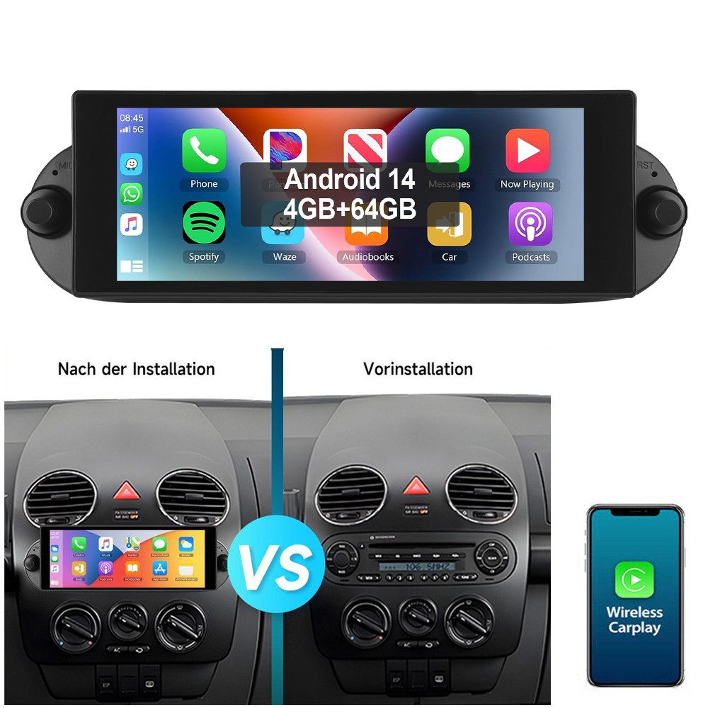 6.86 Zoll Android 14 Autoradio für VW Beetle: Das Android Autoradio mit 6.86" 1280*480 IPS HD kapazitivem Touchscreen, 1/2/4GB RAM und 32/64GB ROM ermöglicht das Herunterladen Ihrer Lieblings-Apps und -Videos, damit das Autofahren nicht mehr langweilig wird. Kein zusätzlicher Rahmen, kein Kabelwechsel, Plug and Play. Es wird mit Canbus geliefert und unterstützt die meisten Originalfunktionen: Lenkradsteuerung, Rückwärtssignale und Lesen von Original-Computerdaten usw.