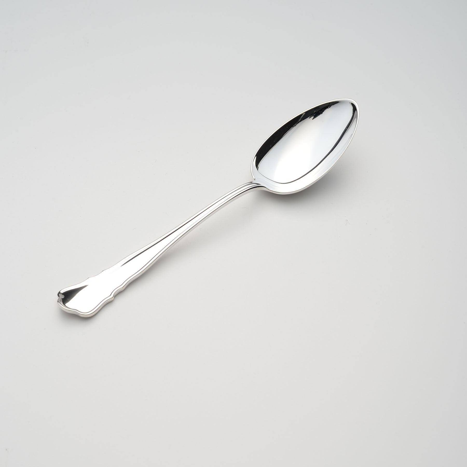 Wilkens Menülöffel Chippendale in 925 Sterlingsilber Hochwertiger Menülöffel von WILKENS in Sterling Silber - Muster Chippendale. Впередe Besteck Teile erhältlich für einen stilvoll gedeckten Tisch! Auf Wunsch mit WILKENS Meister Gravur (aufpreispflichtig). Formschönheit des Rokoko. Thomas Chippendale, Kunsttischler seines Zeichens, war stilprägend für den englischen Rokoko des 18. Jahrhundert. So wie seine Möbel leicht und beschwingt waren, sind es auch die Bestecke, die seinen Namen tragen. Mit Ihrer leicht ausschwingenden Kontur und dem typischen, kräftigen Profil sind sie seit 1910 ein klassisches Muster der Wilkens-Kollektion. Die tägliche Nutzung Ihres WILKENS Silberbesteck verhindert ein Anlaufen (oxidieren) der Besteckteile. WILKENS Silberbestecke dürfen gerne im Geschirrspüler gereinigt werden. Für die besondere Silberpflege empfehlen wir die Pflegeprodukte aus dem Pflegemittelsortiment von Hagerty. So bewahren Sie den Glanz und die Freude an Ihrem WILKENS Tafelsilber.
