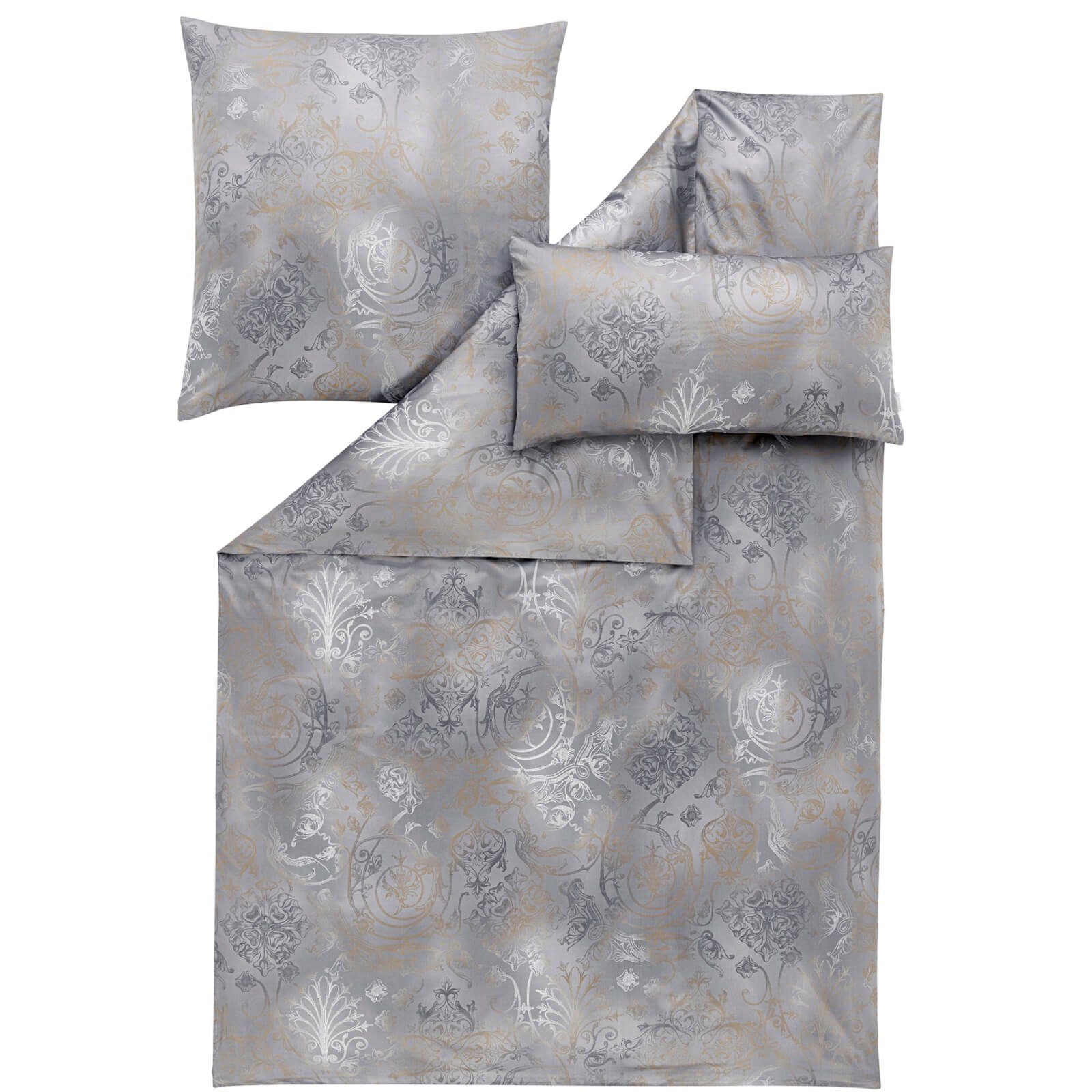 Die Bettwäsche Svizzera von Estella ist ein ganz besonderes Schmuckstück. Elegante, gold- und silberfarbene Ornamente und Verzierungen im Barock-Stil überziehen die gesamte Fläche der Garnitur und versetzt Ihr Schlafzimmer zurück in die Renaissance. Erleben Sie in der hochwertigen Premium-Satin Oberfläche aus 100 Prozent Baumwolle traumhafte Nächte und genießen Sie einen exquisiten Schlafkomfort.