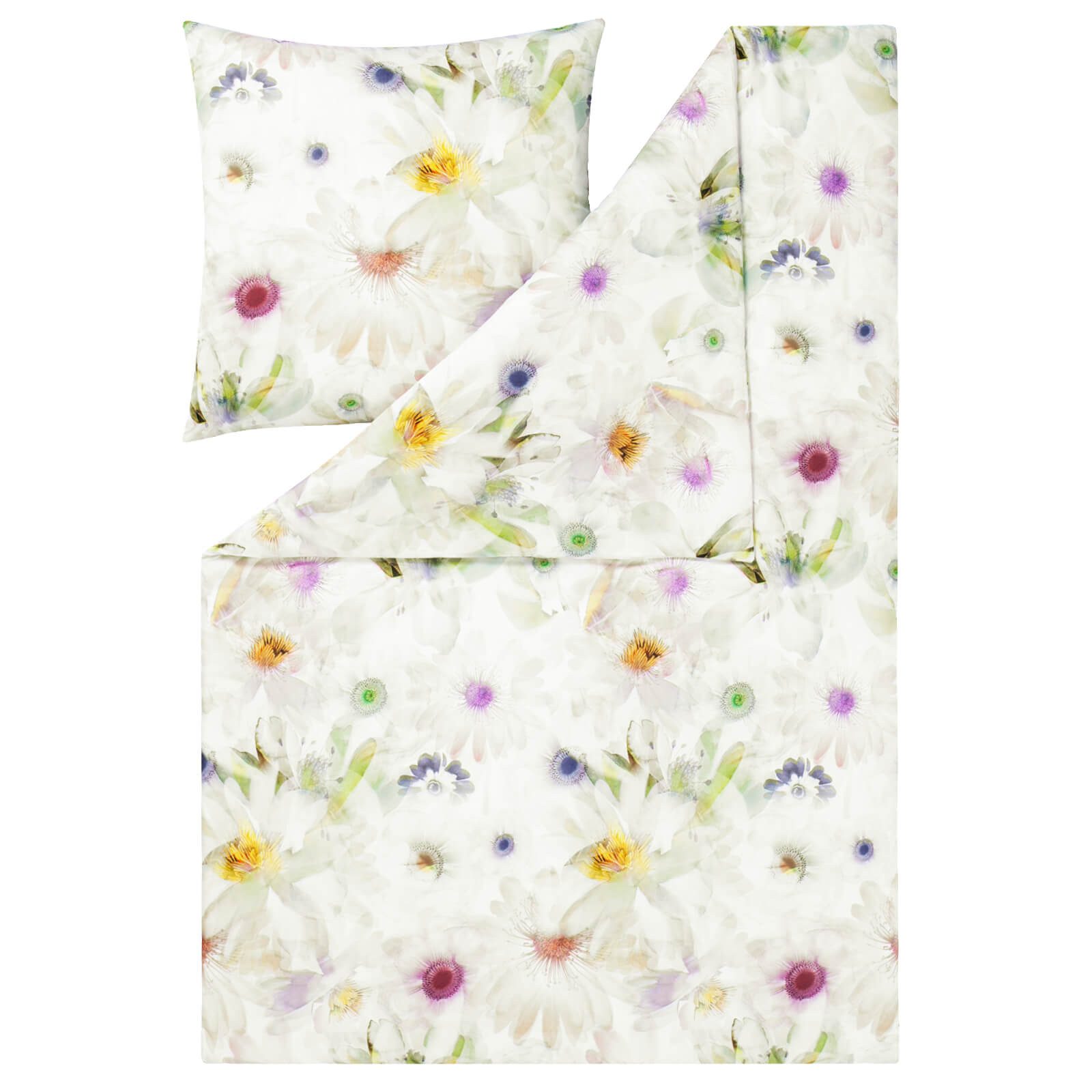 Mit der Bettwäsche Zoey zaubert Estella ein faszinierendes Sommerdesign in Ihr Schlafzimmer. Eine vielfältige Blütenpracht übersät beide Seiten der farbenfrohen Bettgarnitur und lässt den Sommer spürbar werden. Margeriten, Kapkörbchen, Kronblumen, Anemonen und Löwenzahn erinnern an eine blühende Wiese und sorgen für eine ruhige und entspannte Atmosphäre in Ihren vier Wänden. Der aquarellartige Stil rundet das Design perfekt ab. Kuscheln Sie sich in den atmungsaktiven und geschmeidigen Bettbezug aus 100 Prozent Baumwolle, in geschmeidiger Mako Satin Qualität und genießen Sie traumhaften Schlafkomfort.