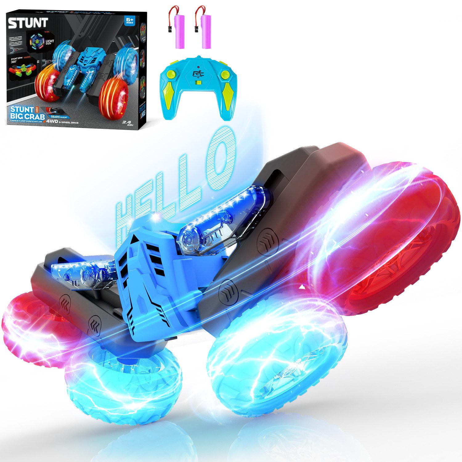 [Coole und Ausgefallene Lichter - Fahren Sie Tag und Nacht] - Unser leuchtendes Ferngesteuertes Auto ist speziell für Kinder ab 3 4 5 6 8 10 Jahre konzipiert! Unser Ferngesteuert Auto besitzt alle Eigenschaften eines normalen RC Stunt Car, aufgerüstet mit brandneuen roten und blauen leuchtenden Rädern. Das magischste ist, dass es sich wie eine blühende Blume um 360 Grad drehen und eine Vielzahl von LED-Mustern Отзывы kann! Ob Tag oder Nacht, dieses Remote Control Car kann immer hell strahlen und die Herzen der Kinder faszinieren!
