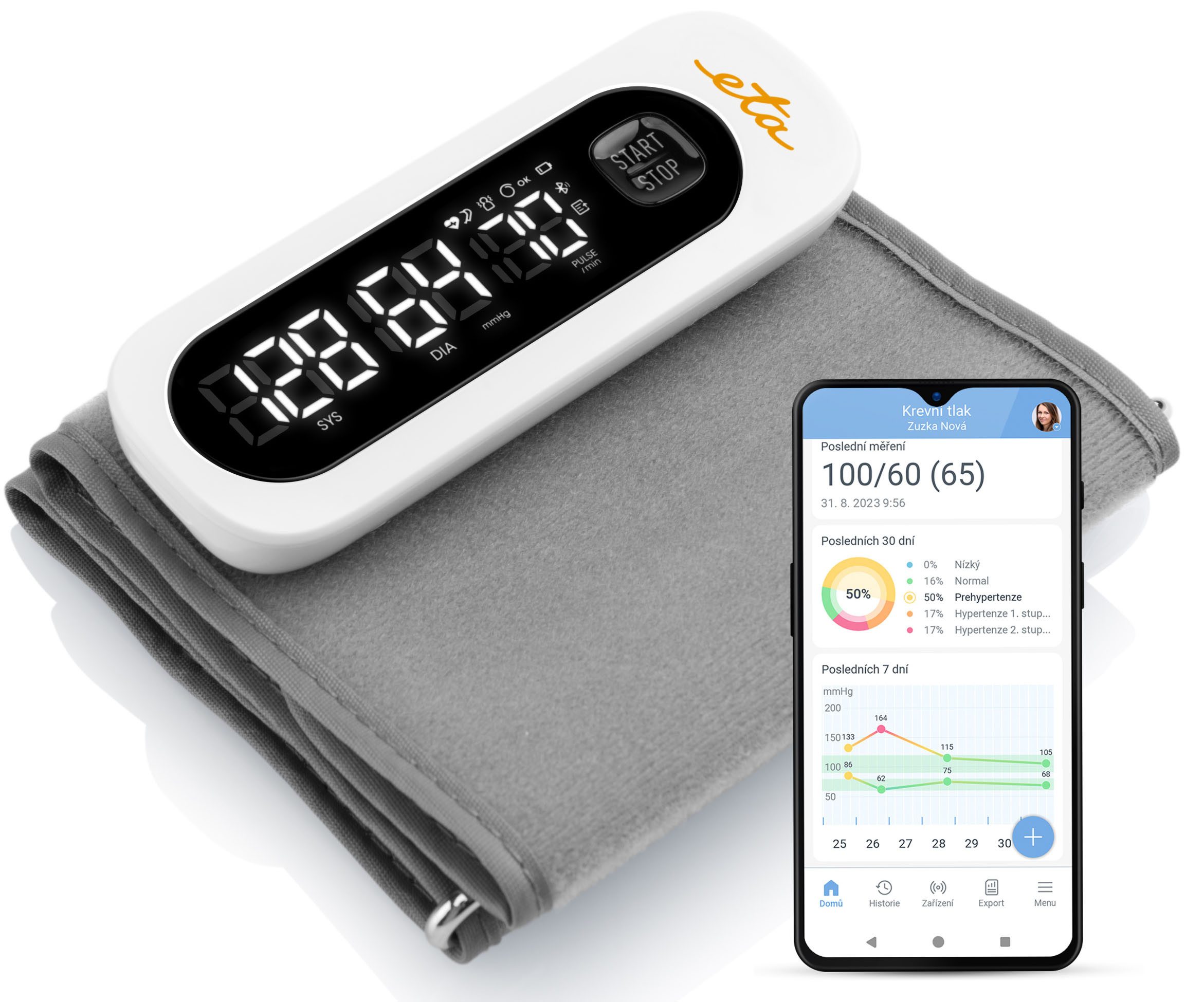 eta Oberarm-Blutdruckmessgerät, oszillometrische Messmethode, Smart App, WHO-Klassifikation