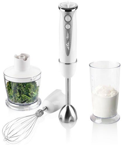 Впередe Vorteile | DC Motor Kabellänge 1,3 m Leistungsaufnahme 400 W ZUBEHÖR: Stabmixer aus Edelstahl, Rührbesen- Getriebe, Hackmesser 500 ml - sichelförmiges Messer aus Edelstahl, Mixbehälter 600 ml |