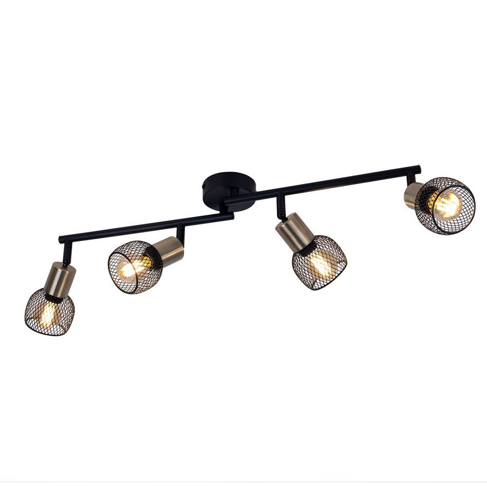 Dieser Deckenstrahler überzeugt durch sein elegantes Design aus schwarz-mattem Metall und Altmessing.