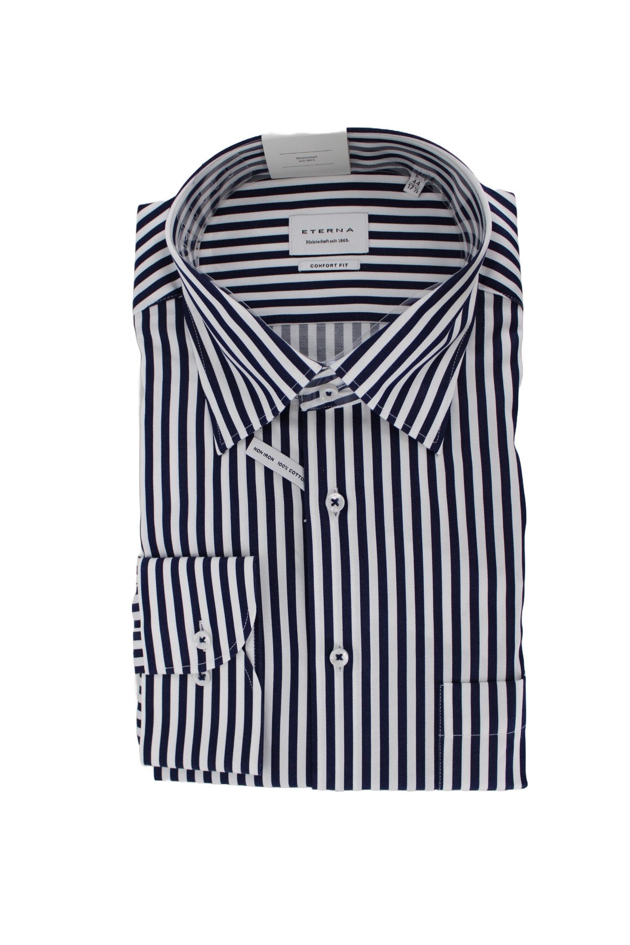 Das stilvolle Eterna Hemd 1056 E11U in Marine überzeugt mit seinem klassischen Streifenmuster und hohem Tragekomfort. Aus 100% Baumwolle gefertigt, ist es atmungsaktiv, hautfreundlich und pflegeleicht. Mit Langarm, Kent-Kragen und bequemer Comfort Fit Passform eignet es sich sowohl fürs Business als auch für festliche Anlässe und smarte Freizeit-Looks.