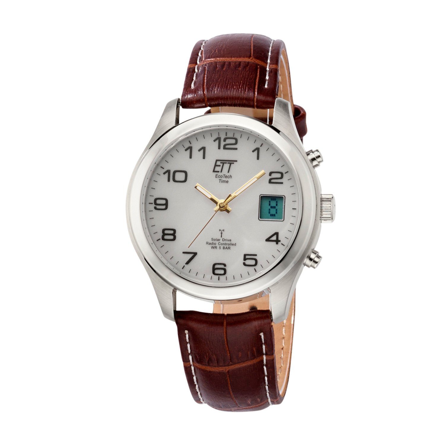 Die ETT Solar Drive Funk Basic EGS-11333-60L Herrenuhr mit braunem Lederband überzeugt mit ihrem klassischem Design. Der ewige Kalender macht die ETT Solar Drive Funk Basic Herrenuhr zu einem praktischen Begleiter. Dank Solar Funk Antrieb geht die ETT Solar Drive Funk Basic Herrenuhr stets genau und benötigt keinen Batteriewechsel.