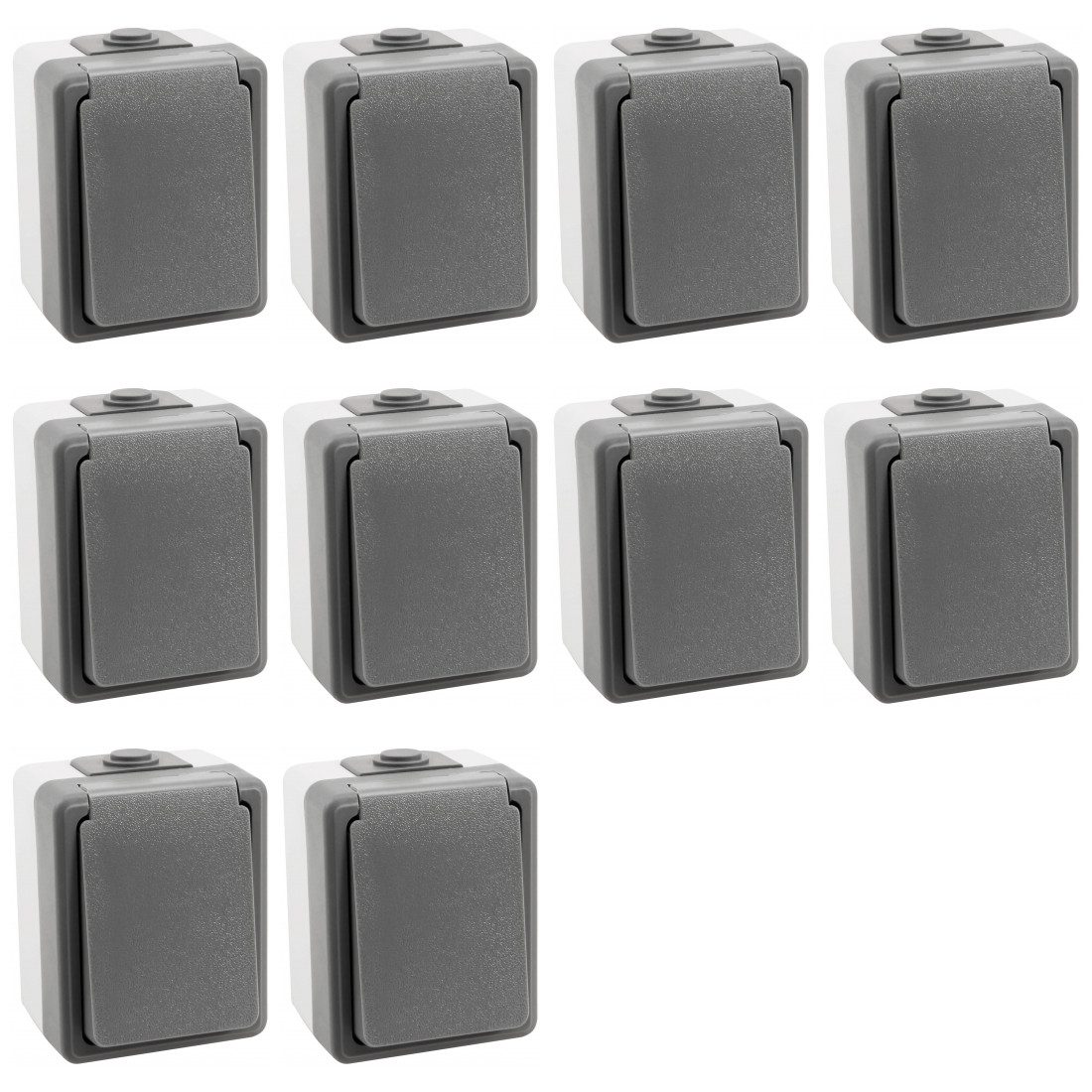 10x SECURE Feuchtraum Steckdose IP44 Einzelsteckdose Aufputz