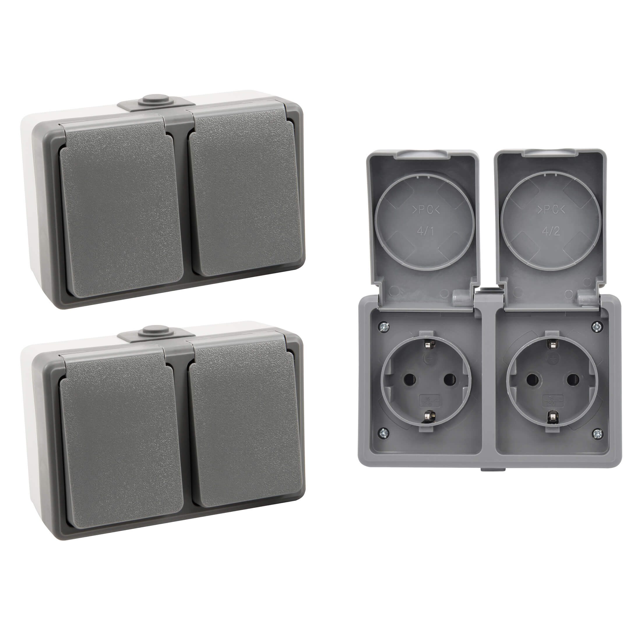Spritzwassergeschützte Aufputz Feuchtraum Doppelsteckdose