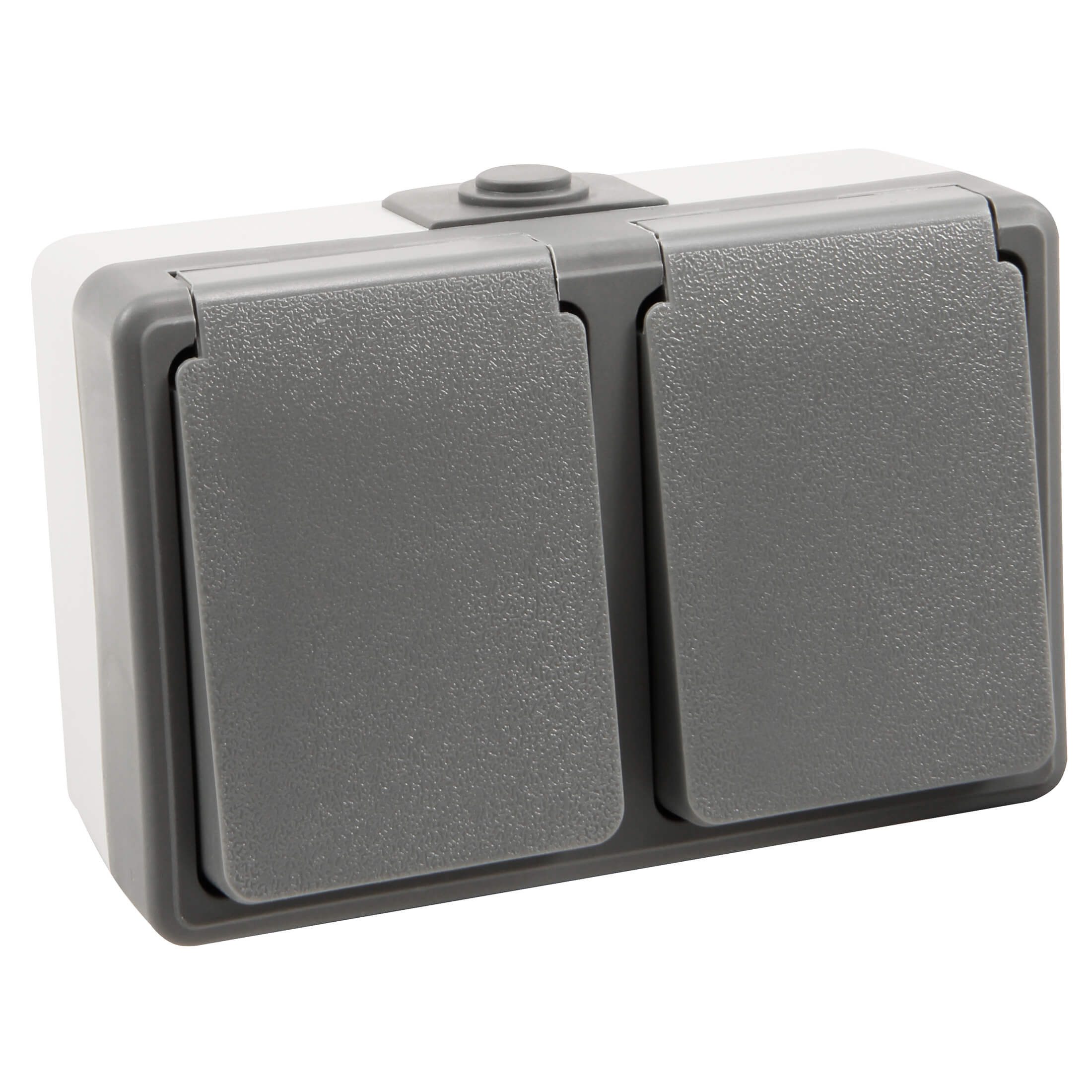 Spritzwassergeschützte Aufputz Feuchtraum Doppelsteckdose
