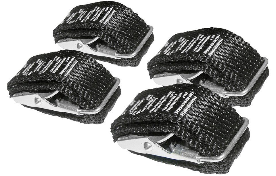 Zur Befestigung der Fahrradträger auf den Fahrradträger. Achtung: Nur zum Verzurren geeignet. Nicht geeignet zum Heben oder Tragen von Lasten. Spanngurt von unten durch das Gurtschloss einführen und anschließend festzurren. Durch das Drücken der Klemme löst sich der Gurt. Auf die ausreichende Befestigung des Transportgurtes achten. Regelmäßig den festen Sitz der Gurte kontrollieren. Nicht in der Nähe von Heizlüfter, Heizungsrohren, etc. lagern. Bei Rissen oder Scheuerstellen Gurt nicht mehr verwenden. Nicht über scharfe Ecken oder Kanten führen.