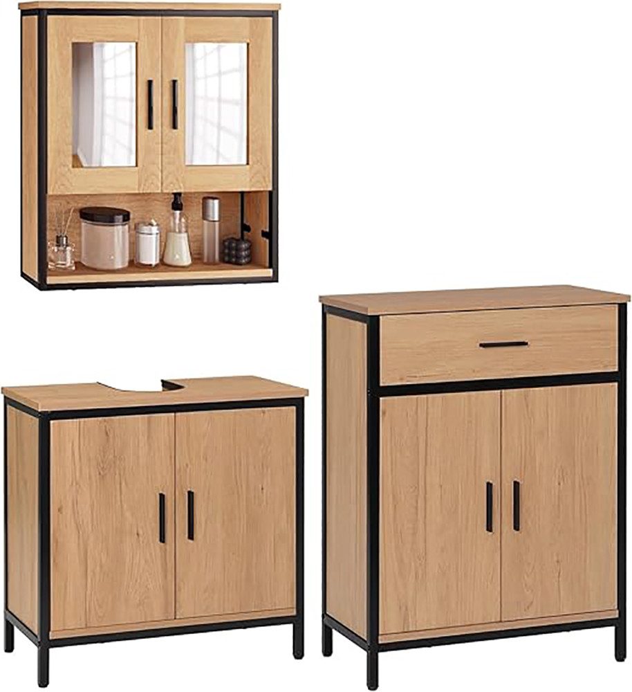 Lieferumfang | 1 x Waschbeckenunterschrank 1 x Spiegelschrank 1 x Badkommode 1 x Aufbauanleitung |