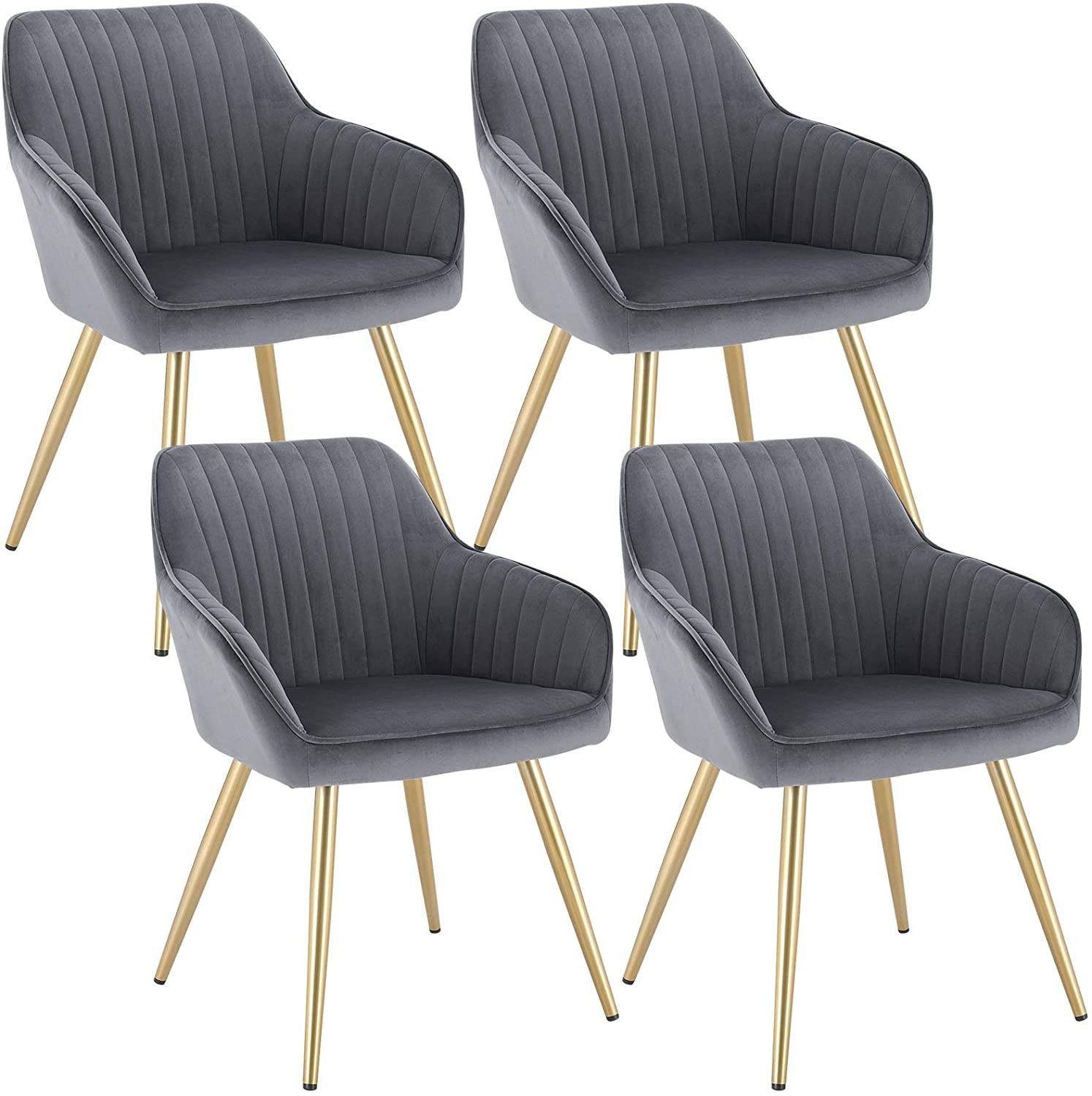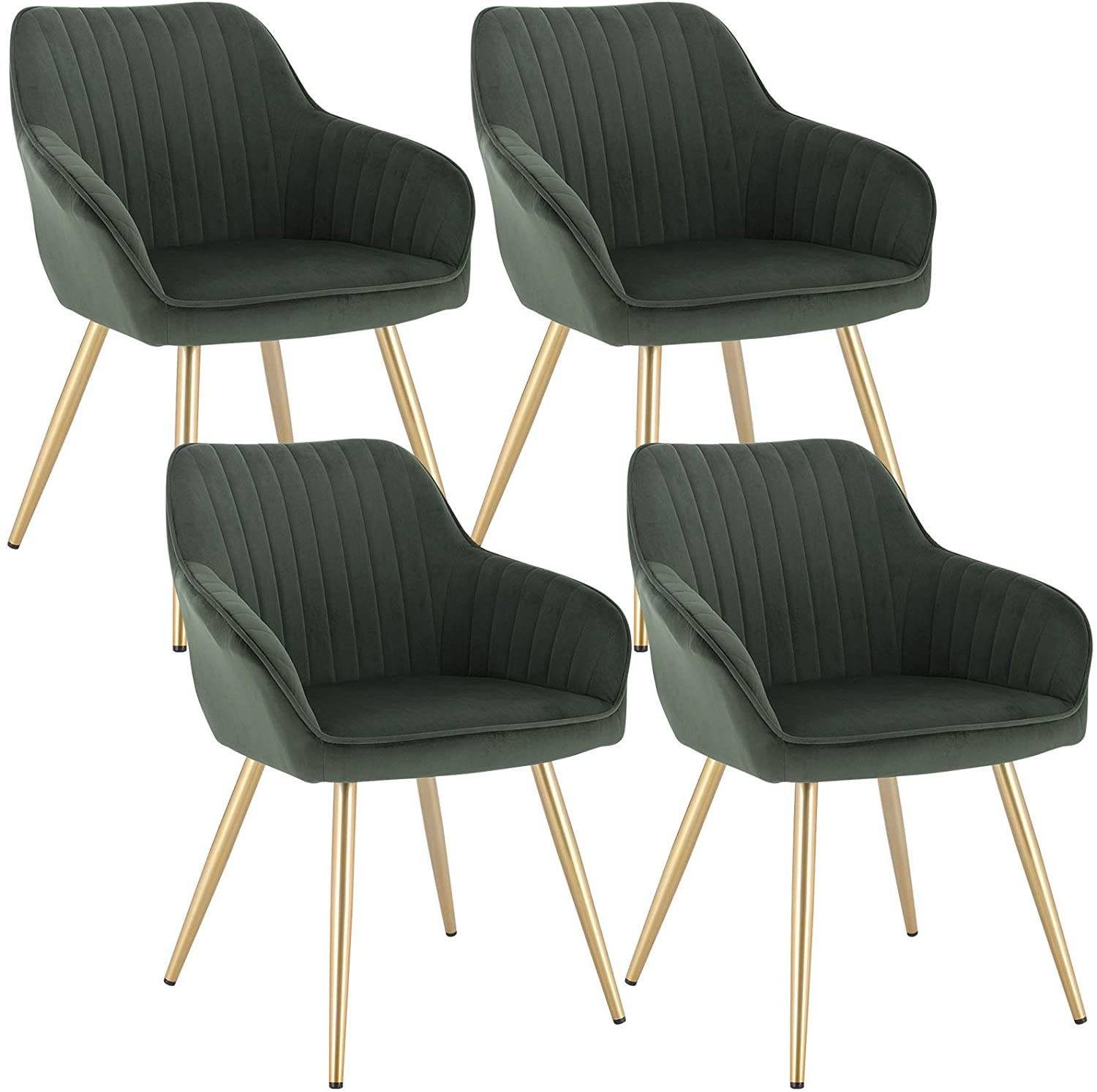 Stark und stabil: Die Beine dieses Esszimmerstuhls sind aus hochwertigem Metall gefertigt. Die goldenen gekreuzten Metallbeine und das dicke Rahmen machen den Küchenstuhl sehr stabil und langlebig. Der Stuhl hat eine statische Tragkraft von 120 kg.Die Unterseite der Stuhlbeine ist mit dicken Anti-Kratz-Füßen ausgestattet. Die abgerundeten Ecken des Stuhls haben ein glattes Design, um versehentliche Kollisionen während des Gebrauchs zu verhindern.