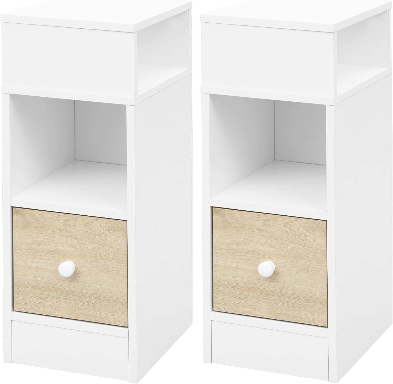 Platzsparend: Der Nachttisch mit einer Basis von 25x30 cm nimmt nicht zu viel Bodenfläche ein, sodass er in kleine Räume passt. Der kompakte Nachttisch bietet mehr Stauraum: Eine Tischplatte, 2 offene Fächer und eine Schublade, was die Aufbewahrung erleichtert.