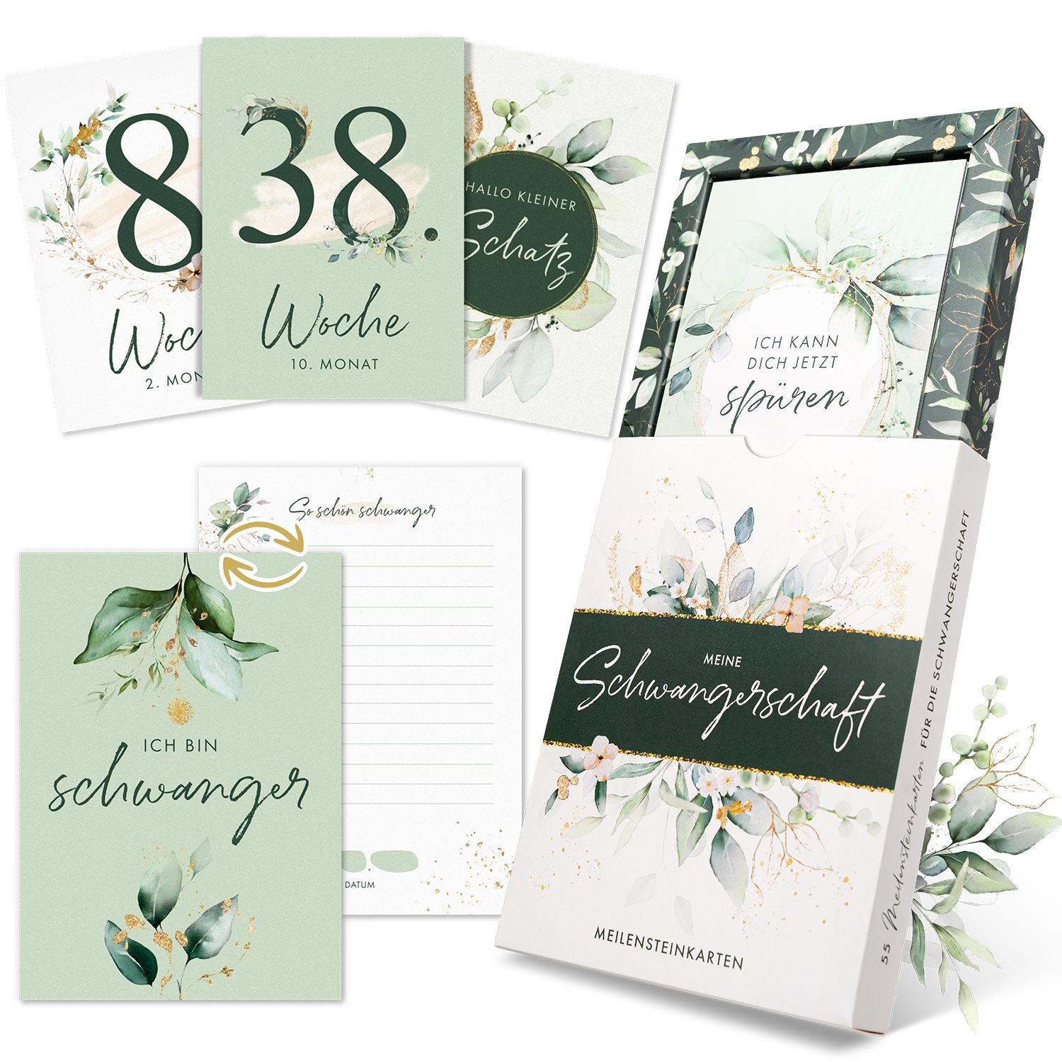 Meilensteinkarten „Meine Schwangerschaft“ Halte die schönsten Momente und emotionalen Meilensteine deiner Schwangerschaft mit unseren liebevoll gestalteten Meilensteinkarten auf kreativen Fotos fest – und teile sie mit Familie und Freunden. "So entsteht ein ganz persönlicher Erinnerungsschatz an diese besondere Zeit." Die Rückseiten der Karten wurden gemeinsam mit Hebammen und Müttern entwickelt und bieten viele abwechslungsreiche Möglichkeiten, Gedanken, Gefühle und besondere Erlebnisse aufzuschreiben und festzuhalten. Die Karten kommen in einer hochwertigen Erinnerungsbox und werden so zu einem wunderschönen Begleiter durch deine Schwangerschaft – oder zu einem besonderen Geschenk für werdende Mamas. Die mit den Karten gestalteten Fotos kannst du direkt in unser Schwangerschaftstagebuch einkleben oder an Familie & Freunde versenden. Tipp: Ergänze deine Meilensteinkarten mit unserem Schwangerschaftstagebuch für noch mehr Erinnerungen – und gönn dir entspannte Auszeiten mit unserem wohltuenden Schwangerschaftstee.