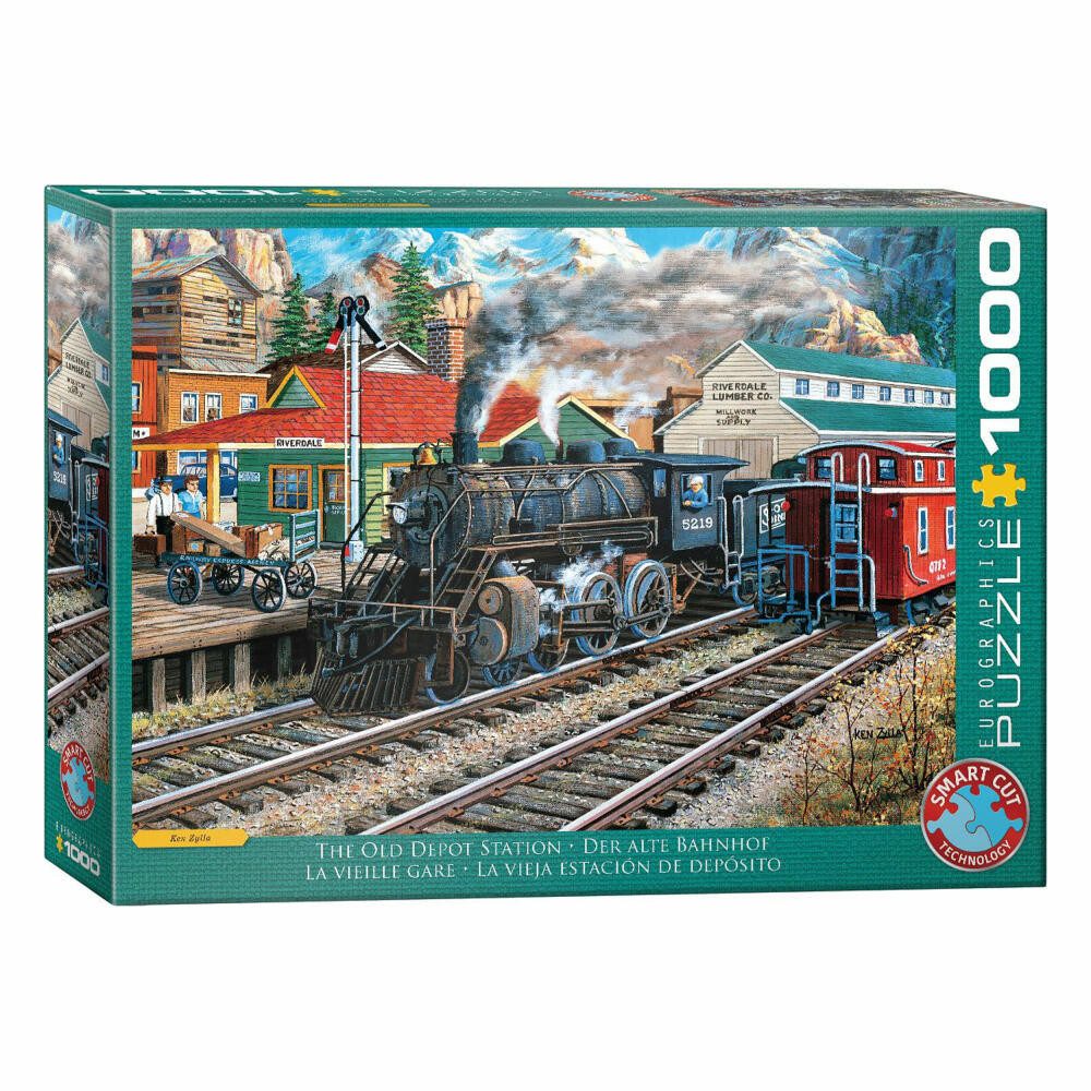 Reisen Sie in die Vergangenheit mit The Old Depot Station, einem faszinierenden 1000-teiligen Puzzle von Eurographics. Dieses detailreiche Kunstwerk von Ken Zylla zeigt eine historische Dampflok an einem alten Bahnhof und versprüht den Charme vergangener Zeiten. Ideal für Eisenbahnfans und Geschichtsinteressierte, bietet es stundenlangen Puzzlespaß. Gefertigt mit der Smart-Cut-Technologie von Eurographics für eine perfekte Passform.