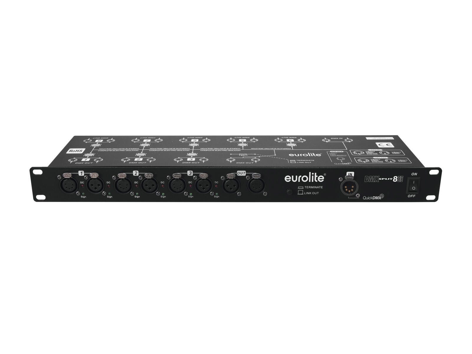 Splitter auf 8 galvanisch getrennte Ausgänge, 3/5-polige & QuickDMX-XLR-Buchsen