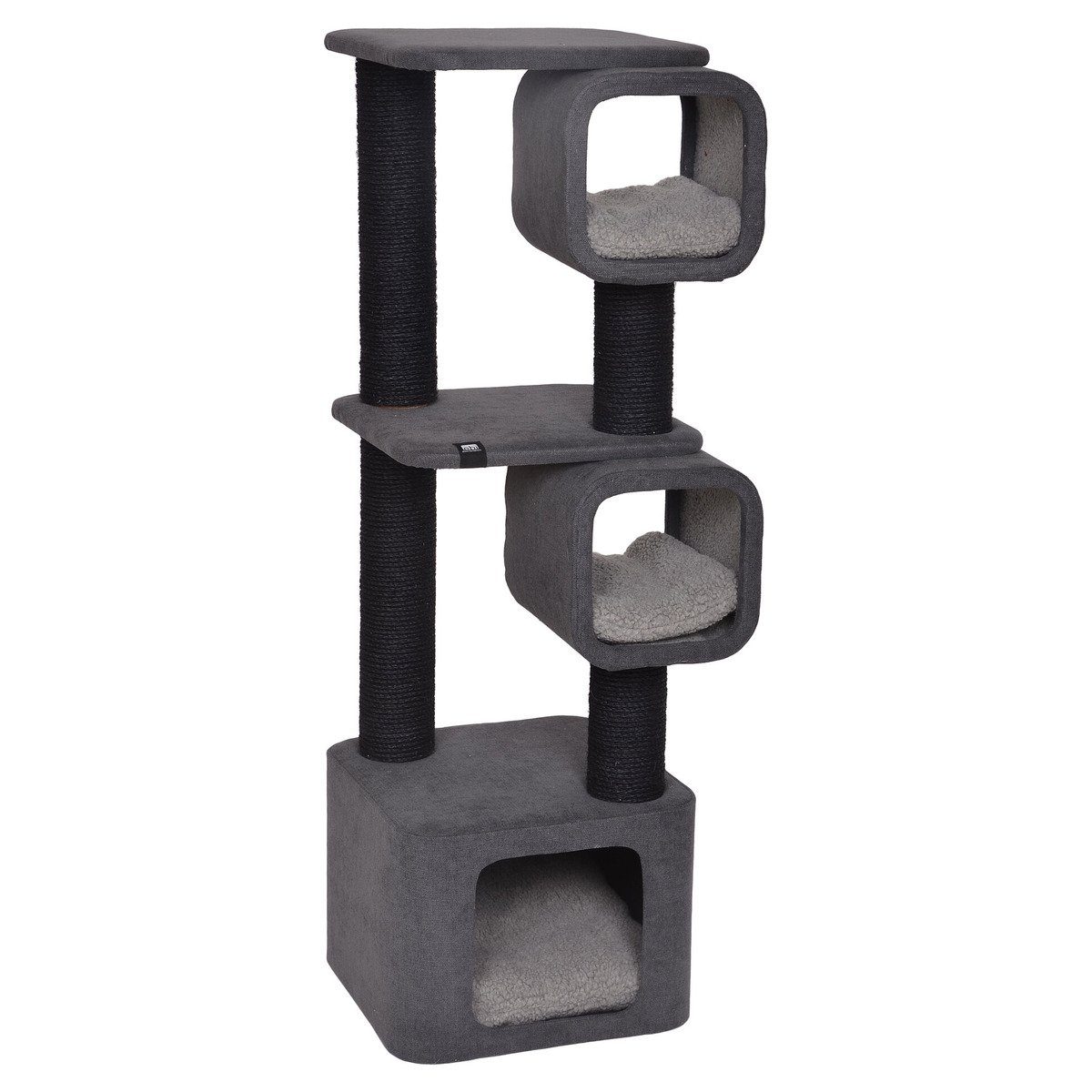 Für Katzen ist es wichtig, einen qualitativ hochwertigen Kratzbaum zu haben, damit sie ihre Nägel pflegen und ihr Revier markieren können. Sisal ist eine natürliche und sehr robuste Faser, die der Katze hilft, die schuppige Deckschicht der Nägel zu entfernen. Dies verhindert das Einwachsen von Nägeln. Ein Kratzbaum ist daher ein Muss für jede Katze! Der EBI-Kratzbaum „Akita“ ist ein niederländisches Design, das vom japanischen Zen-Konzept inspiriert ist. Die Ästhetik dieses Kratzbaums strahlt Ruhe und Minimalismus aus. Damit passt dieser Kratzbaum mit dem weichen Innenstoff zu jedem Interieur. Der Kratzbaum bietet auch einen Unterschlupf mit einem weichen Plüsch-Kissen, sodass Ihre Katze einen gemütlichen Schlafplatz hat. Oben befinden sich zwei Schichten, die jeweils einen Tunnel mit Kissen enthalten. Dadurch wird der Kratzbaum zum idealen Ort zum Entspannen für Ihre Katze.