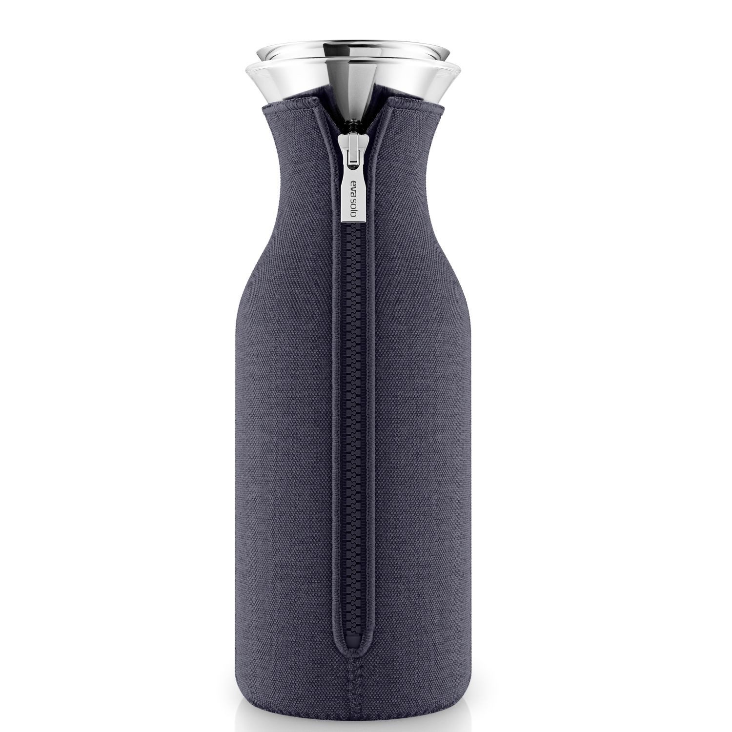 Die Kühlschrankkaraffe des dänischen Design Labels Eva Solo hat sich längst zu einem Klassiker entwickelt. Kein Wunder, denn sie vereint einzigartige Funktionalität mit klaren Linien und einem schönen Design. Die Form der Glasflasche ist an eine traditionelle Milchflasche angelehnt und passt so bequem in übliche Kühlschranktüren. Die Karaffenöffnung ist ausreichend groß, um problemlos Eiswürfel, Zitronenspalten, Gurkenscheiben, Erdbeeren oder Minzeblätter einzufüllen. Die Kühlschrankkaraffe ist ein Teil der preisgekrönten Eva Solo Serie von tropffreien Kannen und Karaffen, die garantiert keine Flecken oder Wasserränder auf dem Tisch hinterlassen. Mit dem patentierten Edelstahl-Ausgießer kann leicht eingegossen werden, ohne daneben zu tropfen oder zu kleckern. Der Flip-Top-Deckel öffnet sich automatisch beim Einschenken, und verschließt sich wieder, wenn die Karaffe auf dem Tisch steht. Der Anzug der Karaffe hält den Inhalt je nach Bedarf heiß oder kalt und verhindert Kondenswasserflecken auf dem Tisch. Karaffe und Flip-Top-Deckel sind spülmaschinengeeignet. Der Anzug kann im Schonwaschgang bei 30 Grad in der Maschine gewaschen werden. Die Karaffe hat ein Fassungsvermögen von 1000 ml. Der Anzug hat eine Innenseite aus Neopren und eine Außenseite aus einem eleganten Strukturstoff, der perfekt zu einem modernen und minimalistischen Einrichtungsstil passt. Der Anzug hat die Farbe Night Sky.