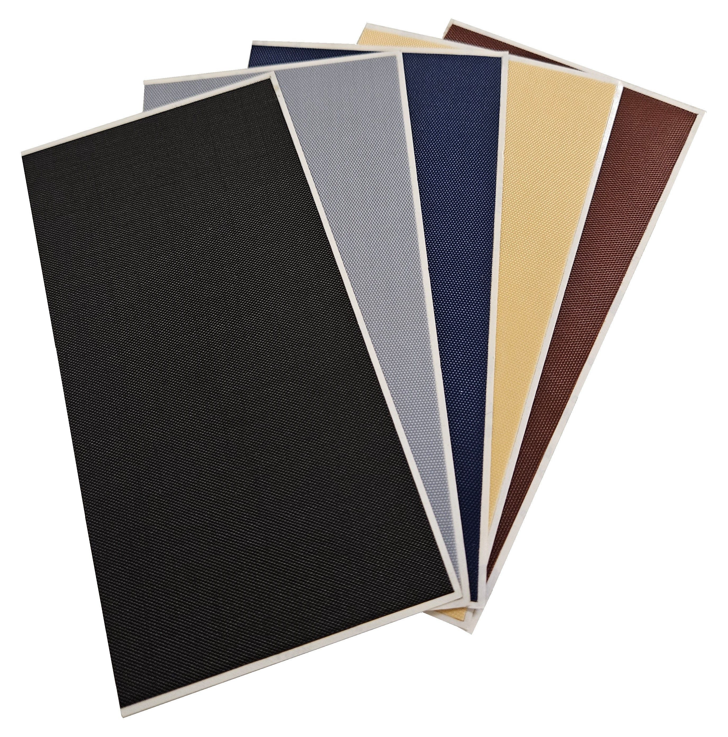 Lieferumfang | 1 Druckverschlußbeutel mit 5 Pads in schwarz, grau, blau, beige, braun - je 70 x 140 mm und Kurzanleitung |