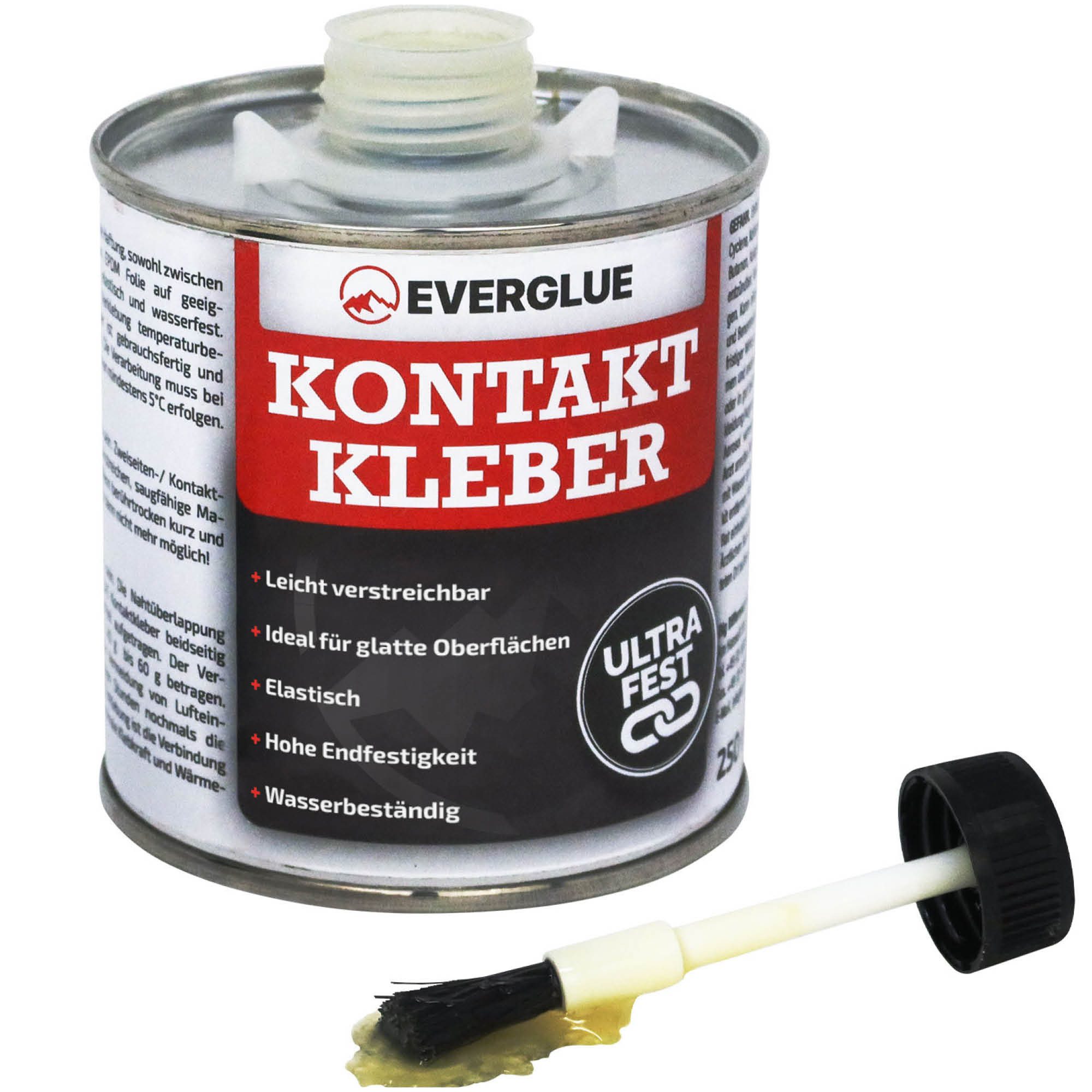 Mit dem Everglue Kontaktkleber profitieren Sie nicht nur von einer sofortigen starken Haftung, sondern auch von einer dauerhaften Lösung. Seine Beständigkeit gegen Alterung, UV-Strahlung und Ozon sichert eine langfristige Haltbarkeit Ihrer Projekte, selbst unter schwierigen Bedingungen. Die Flexibilität und Elastizität des Klebers tragen dazu bei, dass die Verbindung auch unter Belastung stabil bleibt, was besonders bei beweglichen Teilen von Vorteil ist.
