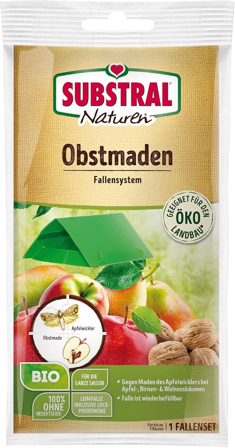 Die Falle ab Mitte Mai in Kopfhöhe an luftigem Platz neben die zu schützenden Bäume hängen. Wechseln Sie die Leimböden und Pheromon-Kapseln nach 5 bis 6 Wochen. Das Pheromon befindet sich außen auf der Kapsel. Es ist unsichtbar und geruchlos