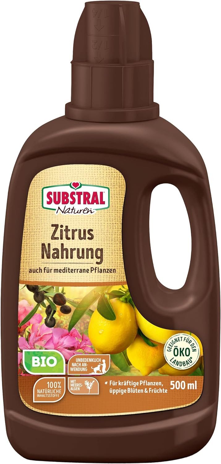 Substral Naturen Bio Zitrus & Mediterrane Pflanzen Nahrung wurde für Hobbygärtner entwickelt, die ein Gleichgewicht zwischen wirksamer Ernährung ihrer Pflanzen und dem Einsatz von Düngern ohne Chemie wünschen. Sie sind für die Verwendung im ökologischen Landbau geeignet und daher auch im eigenen Biogarten ideal. Substral Naturen Zitrus Nahrung Bio ist ein natürlicher Flüssigdünger mit Braunalgen, der lhre Pflanzen mit wichtigen Nährstoffen versorgt. Für kräftige Pflanzen, üppige Blüten und Früchte. Die Ausgangsstoffe sind gemäß Verordnung EG 834/2007 idgF für die ökologische/biologische Produktion geeignet. Sie wurden konventionell erzeugt.