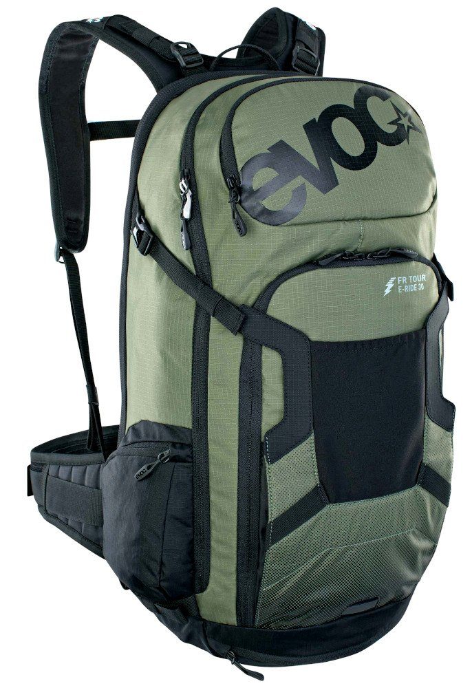E-Mountainbike Abenteurer kennen das Dilemma: Ersatzakkus und Zubehör für E-Bikes bringen nicht nur mehr Gewicht mit sich, sie müssen auch sicher und rutschfest verstaut werden und dürfen im Falle eines Sturzes keine zusätzliche Gefahr für die Wirbelsäule darstellen. Mit dem Fr Tour E-Ride löst EVOC diese Probleme.