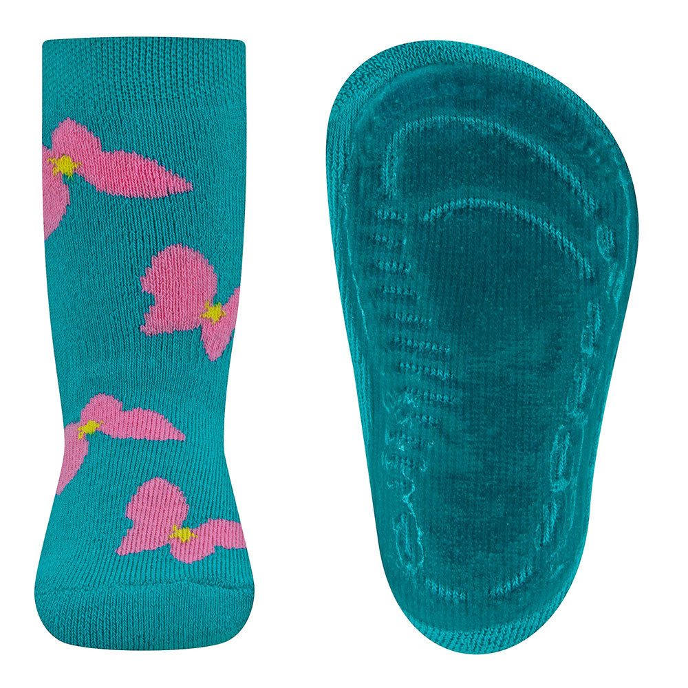 "Frisch von der Blumenwiese..." Diese Stoppersocken mit niedlichem Schmetterlingsmotiv allover eignen sich ideal als Hausschuhersatz. Die hochwertige Verarbeitung und die ergonomische Silikonbeschichtung sorgen für eine perfekte Passform und bieten zuverlässigen Schutz vor dem Ausrutschen auf glatten Böden. Das strapazierfähige Baumwollmaterial und der elastische Bund der Stoppersocken gewährleisten zudem einen komfortablen Sitz am Fuß. Die hochwertige Verarbeitung ist ein weiteres Qualitätsmerkmal dieser Socken. Hergestellt aus einer Mischung aus 85% Baumwolle, 13% Polyamid und 2% Elasthan, sind sie leicht zu pflegen und behalten auch nach zahlreichen Waschgängen ihre Form und Farbe. 85% Baumwolle/ 13% Polyamid/ 2% Elasthan Made in Turkey STANDARD 100 by OEKO-TEX® Zertifikatsnummer: 98.0.8426