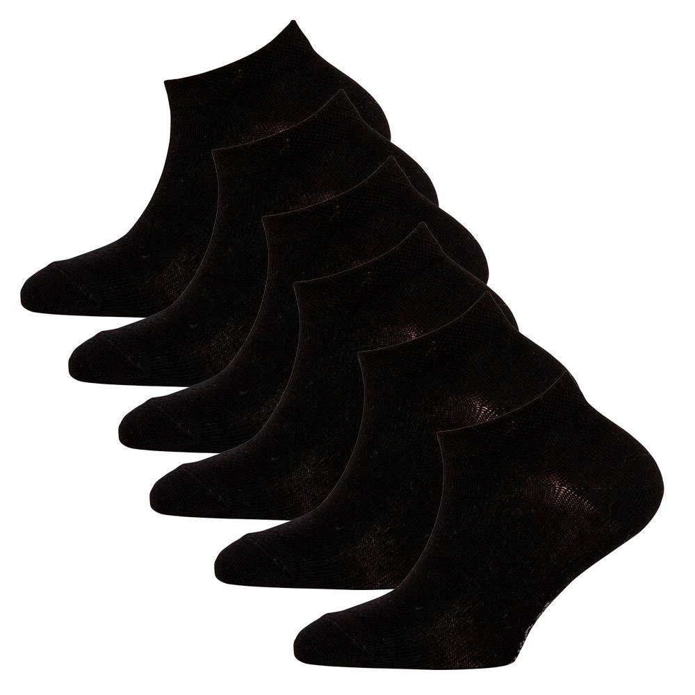 ''Das sportliche Basic..." Sneakersocken dürfen im Sommer nicht fehlen. Das praktische 6er Pack mit einfarbigen Sneaker Socken ist in verschiedenen Farbkombinationen erhältlich. Ob in knalligem Pink und Grün oder in schlichtem Weiß und Schwarz - die unifarbenen kurzen Socken lassen sich zu vielen unterschiedlichen Outfits kombinieren. Dank der hochwertigen Verarbeitung und der bequemen Passform sitzen sie angenehm am Fuß, ohne zu rutschen. Damit eignen sie sich perfekt für alle kleinen und großen Abenteuer des Alltags. Sie lassen sich sowohl zu kurzen Hosen und Röcken als auch zu langen Jeans oder Leggings kombinieren und können dank der verschiedenen Farben perfekt auf die Kleidung oder Schuhe abgestimmt werden. Da die Sneakersocken aus strapazierfähigem und pflegeleichtem Material hergestellt werden, wirst du lange Freude an ihnen haben. 80% Baumwolle/ 17% Polyamid/ 3% Elasthan Made in Turkey STANDARD 100 by OEKO-TEX® Zertifikatsnummer: 98.0.8426