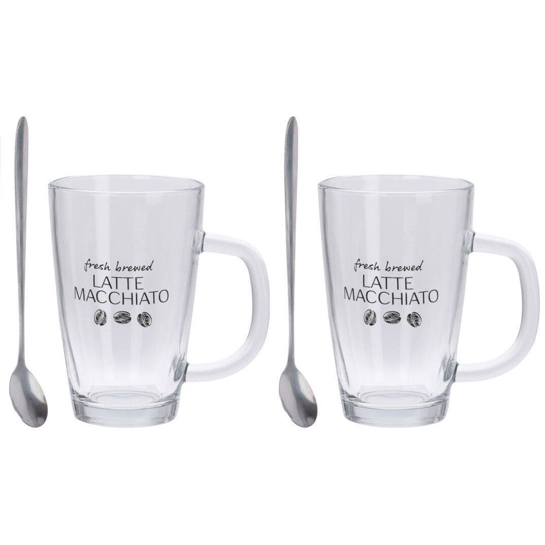 Ein Produkt, das besonders Liebhaber des minimalistischen Designs anspricht, ist ein Set mit 2 Kaffeetassen von EH Excellent Houseware. Dieses Kit besteht aus strapazierfähigem Glas. Jeder der Becher hat ein Fassungsvermögen von 300 ml und eine Abmessung von 14 cm in der Höhe und 8,5 cm im Durchmesser. Das Produkt ist transparent mit einem zarten Schriftzug und einem Muster, das mit dem Morgenkaffee verbunden ist.